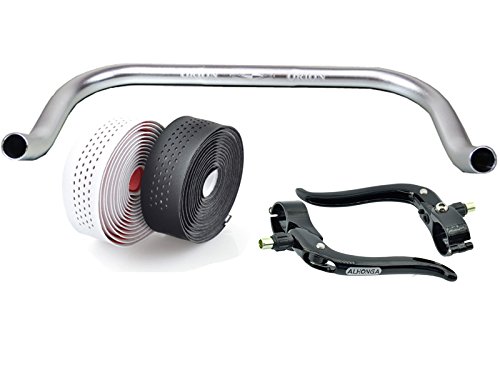 Mit dem Bullhorn Fixie Single Speed Road Bike Triathlon Handlebar Silver with Matching Brake Lever and Handlebar Tape, white bekommst du Qualität, Komfort und Stil – perfekt für deine nächste Tour.