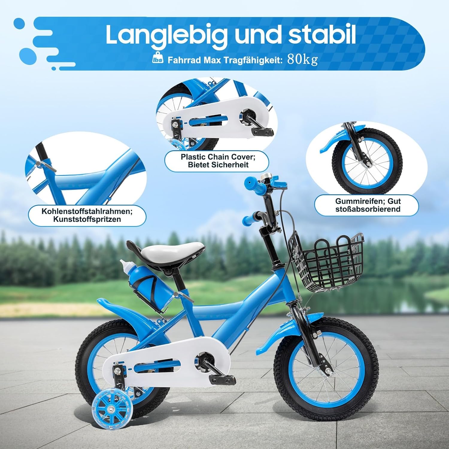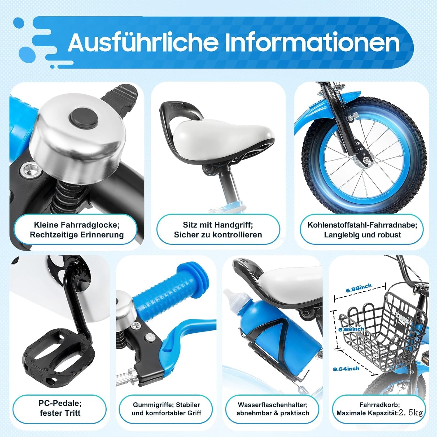 Jetzt entdecken: Charocean 12 Inch Children’s Bicycle for Boys and Girls from 2-5 Years, Upgraded Children’s Bicycle with Stabilisers, Bicycle for Children, Height Adjustable Children’s Bikes for Training, Outdoor