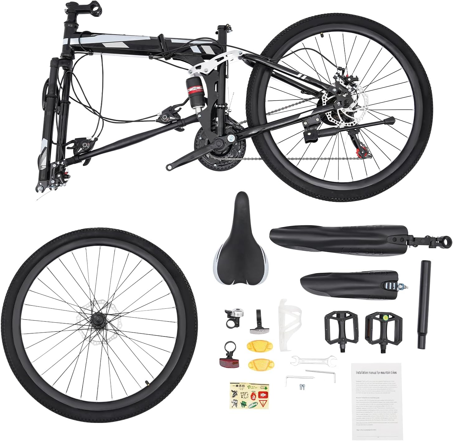 Jetzt entdecken: Charocean Mountain Bike 26 Inch Men’s Bicycle 21 Speed Gears Folding Bike MTB with Mudguard & Full Suspension, Bicycles with Disc Brake, Bicycle for Men and Women