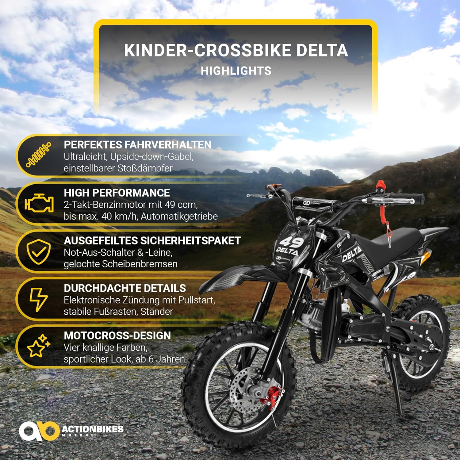 Mit dem Children’s Mini Crossbike Delta 49 cc 2–Stroke Dirt Bike Scrambler Pocket Mini Bike Green bekommst du Qualität, Komfort und Stil – perfekt für deine nächste Tour.