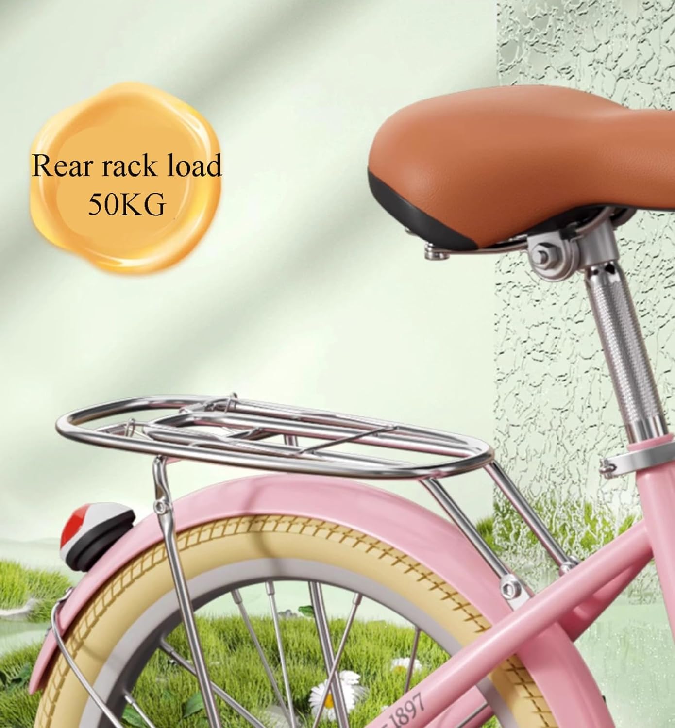 Top-Angebot: City Bike 22 Inch Girls Teenager Student Bicycle Light Bicycle Woven Bicycle Basket Retro Simple