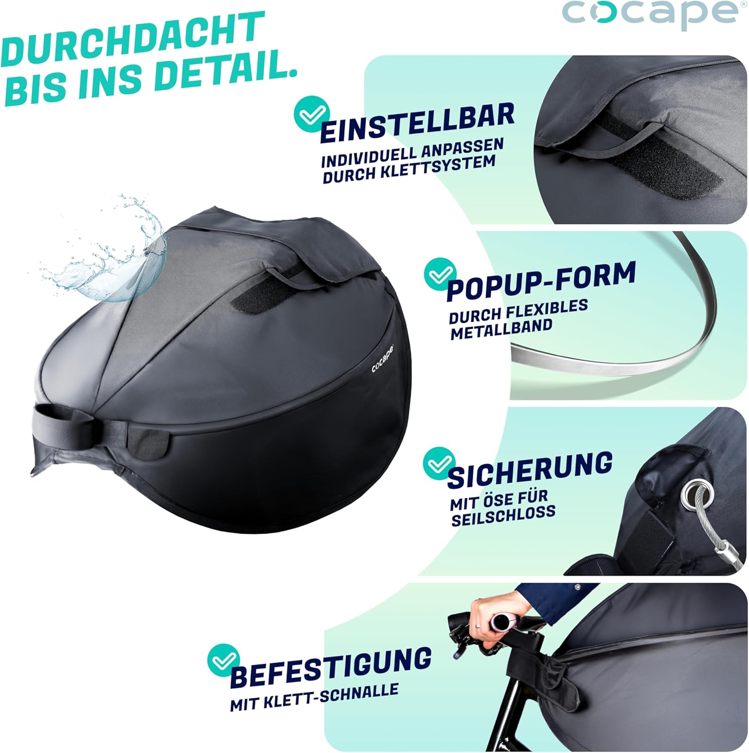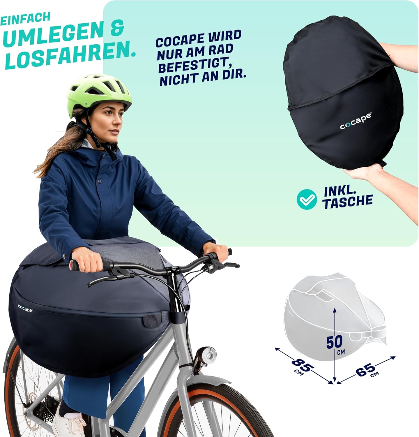 Top-Angebot: cocape Bicycle rain cover – the alternative to rain trousers and rain poncho, protects legs and lower body, waterproof, foldable and universally suitable for e-bike, women’s bike, men’s bike, city