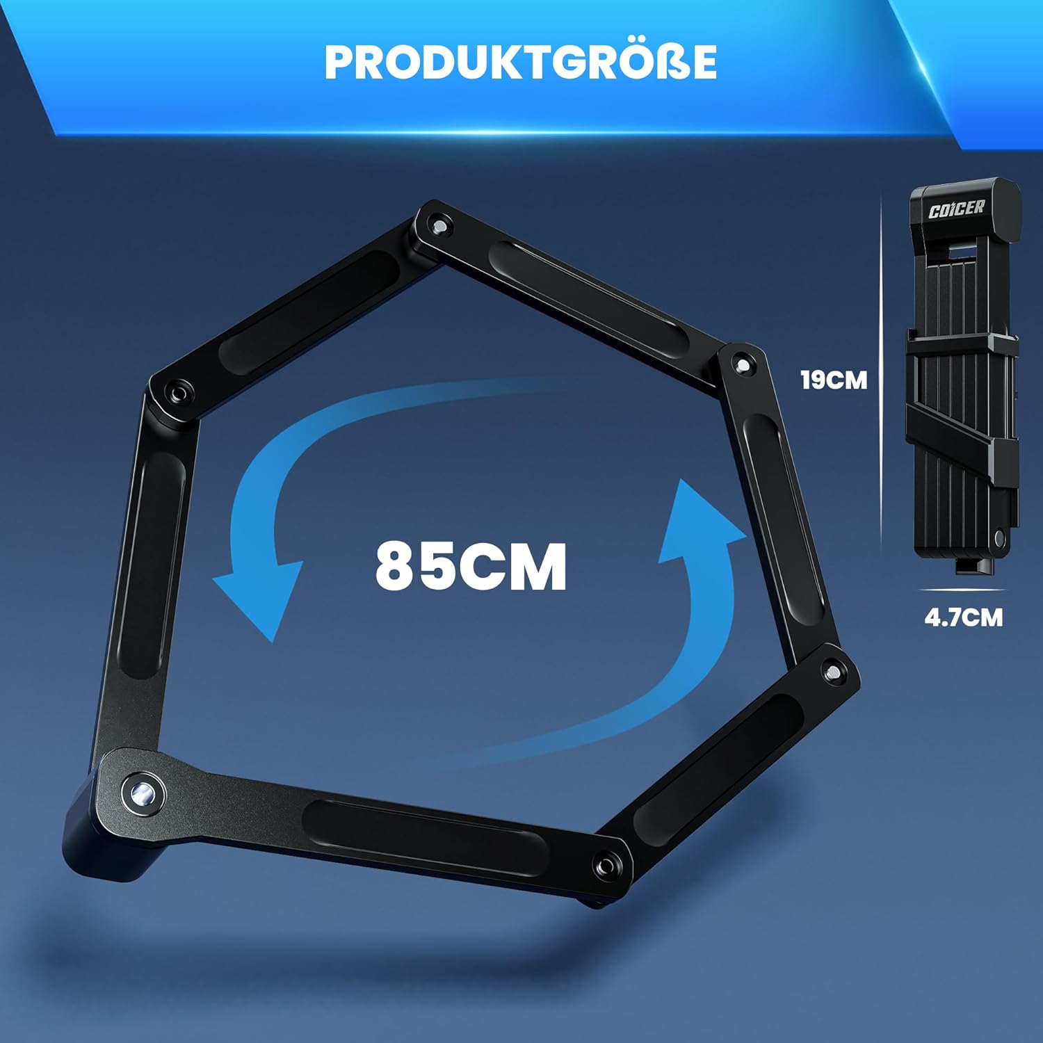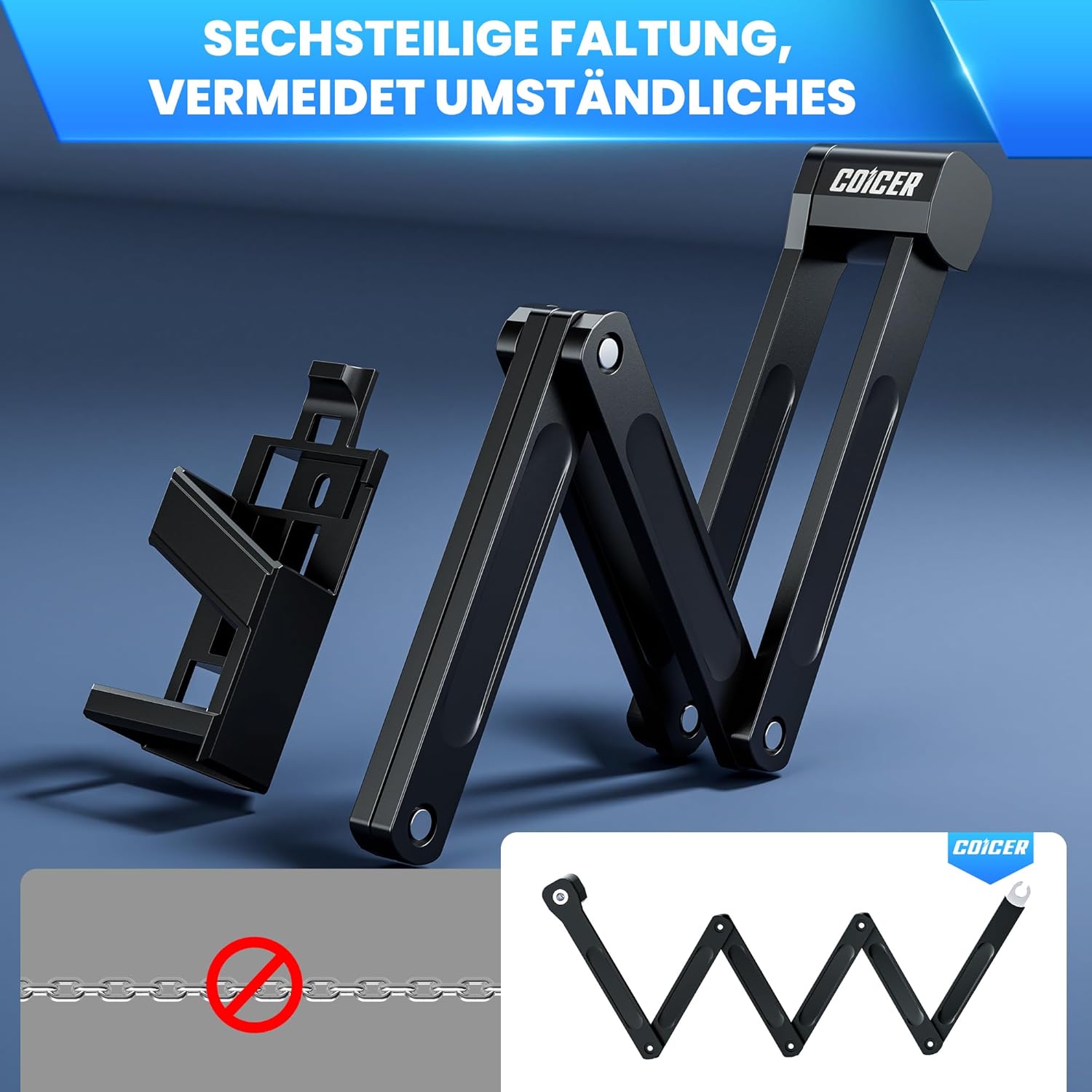 Jetzt entdecken: COICER Bicycle Lock Folding Lock 85 cm with 3 Keys Folding Lock for E Scooter, Bicycle and Motorcycle, Bicycle Lock High Security Including Bracket – Bike Lock, Black