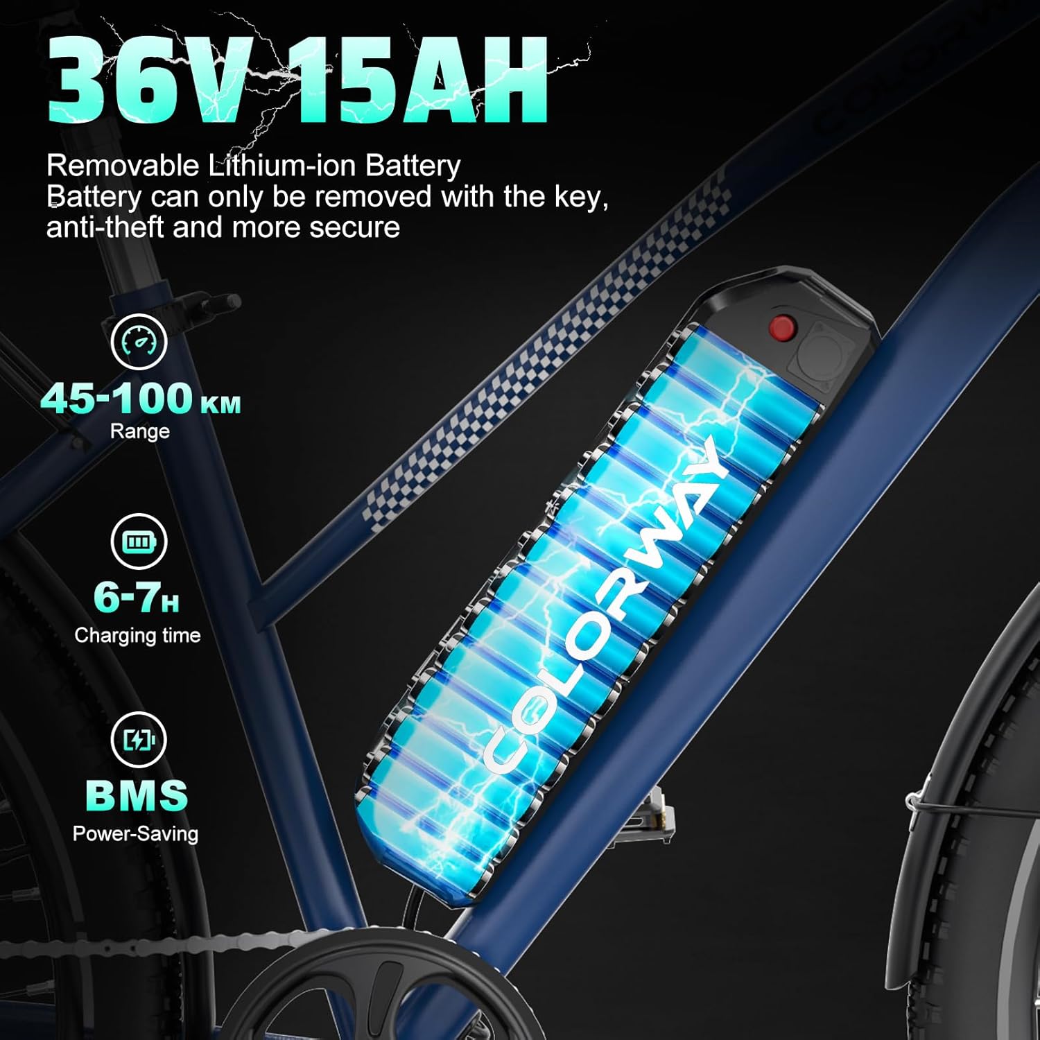 Top-Angebot: COLORWAY BK27 Electric Bicycle, 28 Inch EBike, 2 Riding Modes City Bike with 36 V 15 Ah Battery, with Pedal Support, Commuter Bicycle with 250 W Motor, EBike for Unisex Adults Range up to 45-100 km