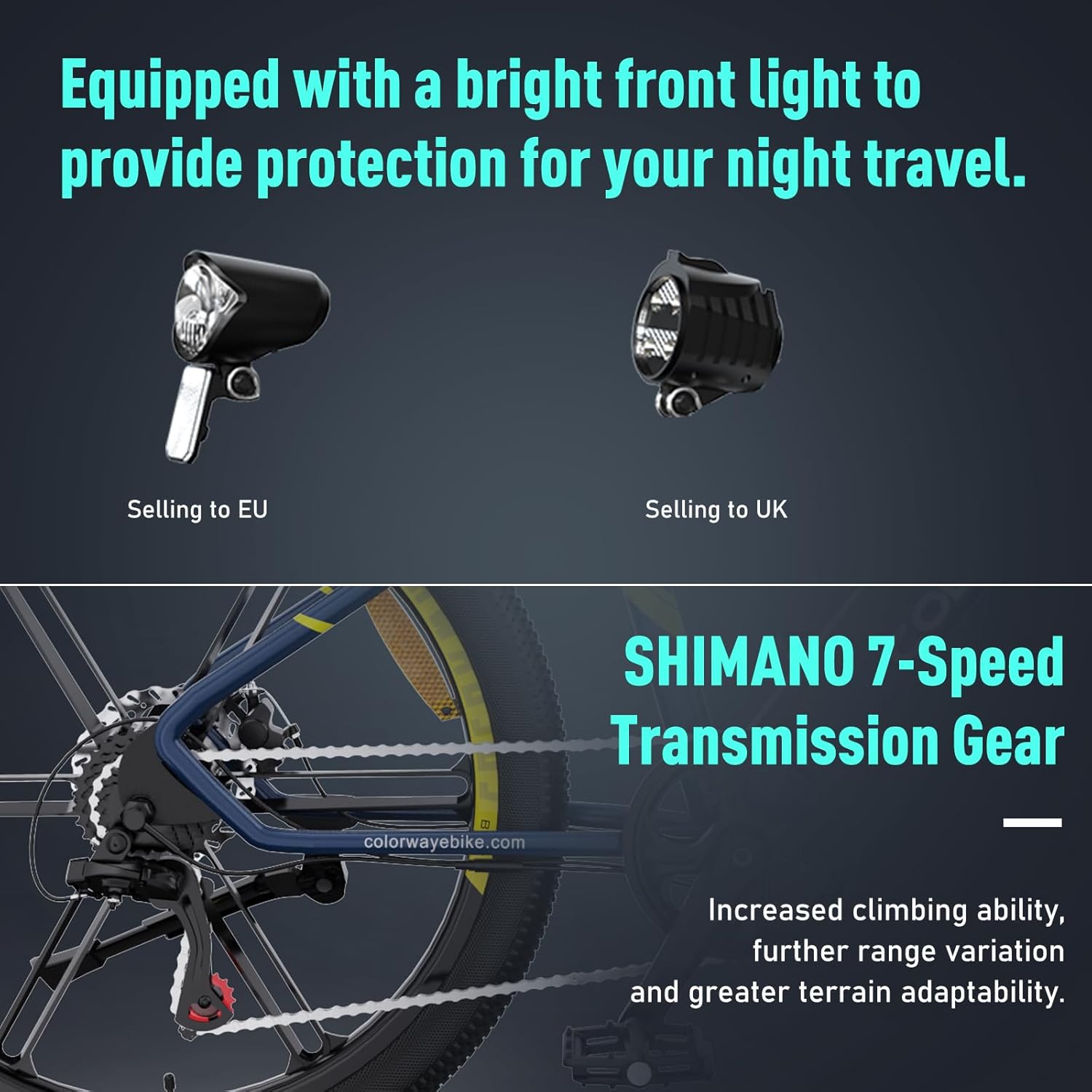 Das COLORWAY EBike Men’s Women’s Electric Bicycles 26 x 2.35 Inch 250 W Motor 36 V 12 Ah Removable Battery EBike, Top Speed 25 km/h, E Mountain Bike Endurance 35-90 KM, Pedelec ist ideal für Sportbegeisterte, die ein zuverlässiges Fahrrad suchen.
