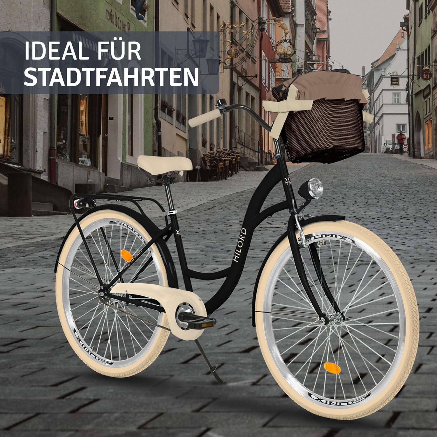 Jetzt entdecken: Comfort Bicycle City Bike with Basket Vintage Women’s Bicycle Dutch Bike, 26 Inches, Black/Cream, 1-Speed