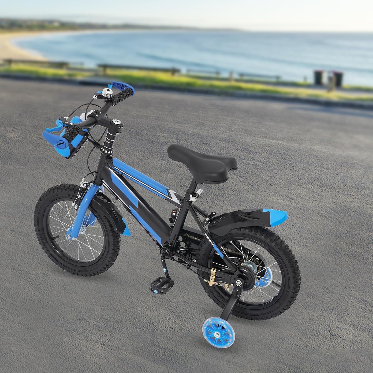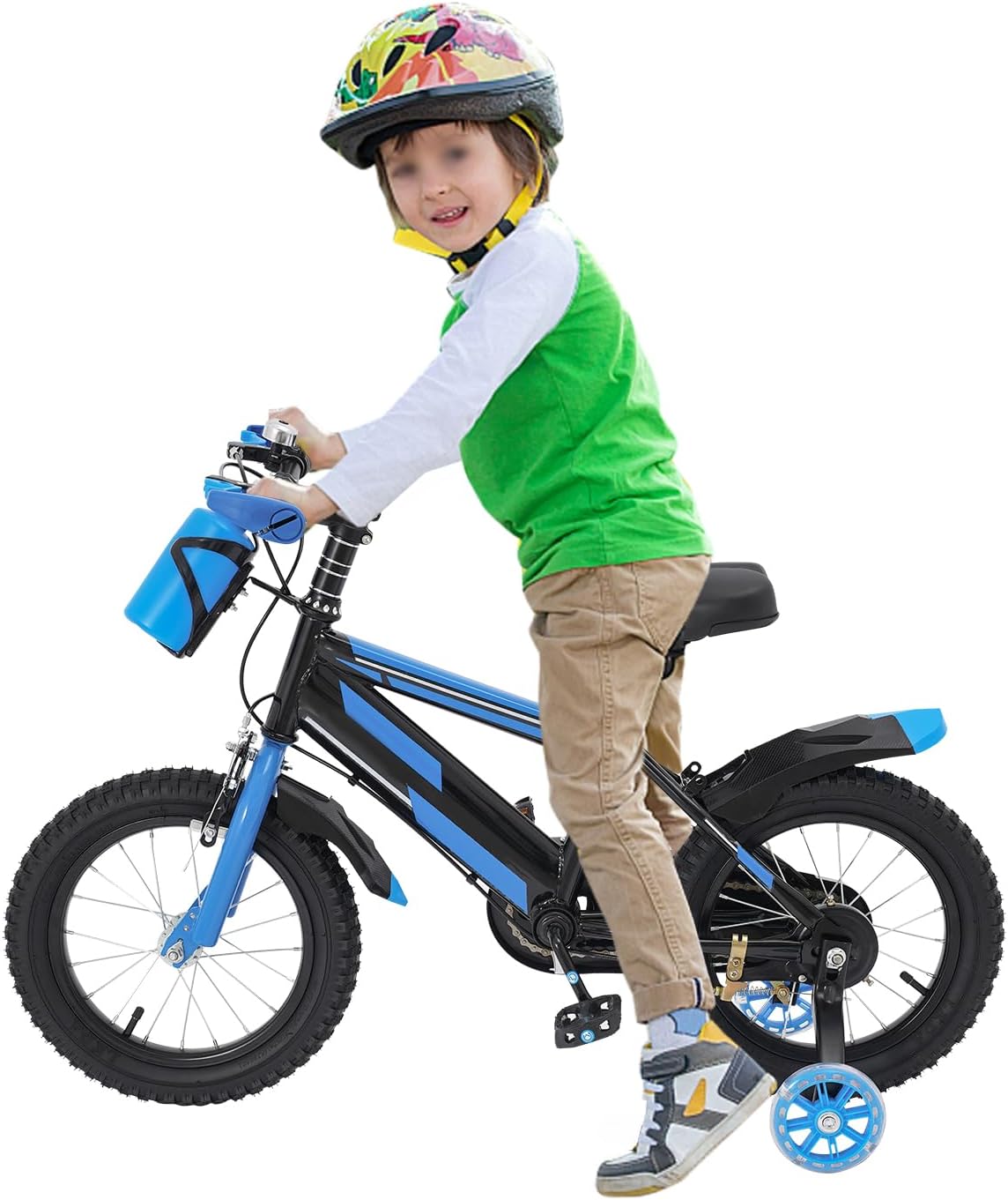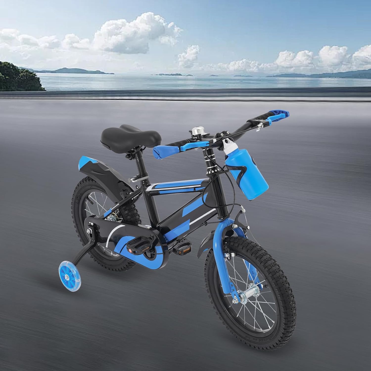 Top-Angebot: CUMELLIIR Children’s Bicycle 14 Inch Boys Girls Bicycle with Stabilisers and Water Bottle, Height Adjustment, High Carbon Steel Bicycle Children from 4 Years, Blue