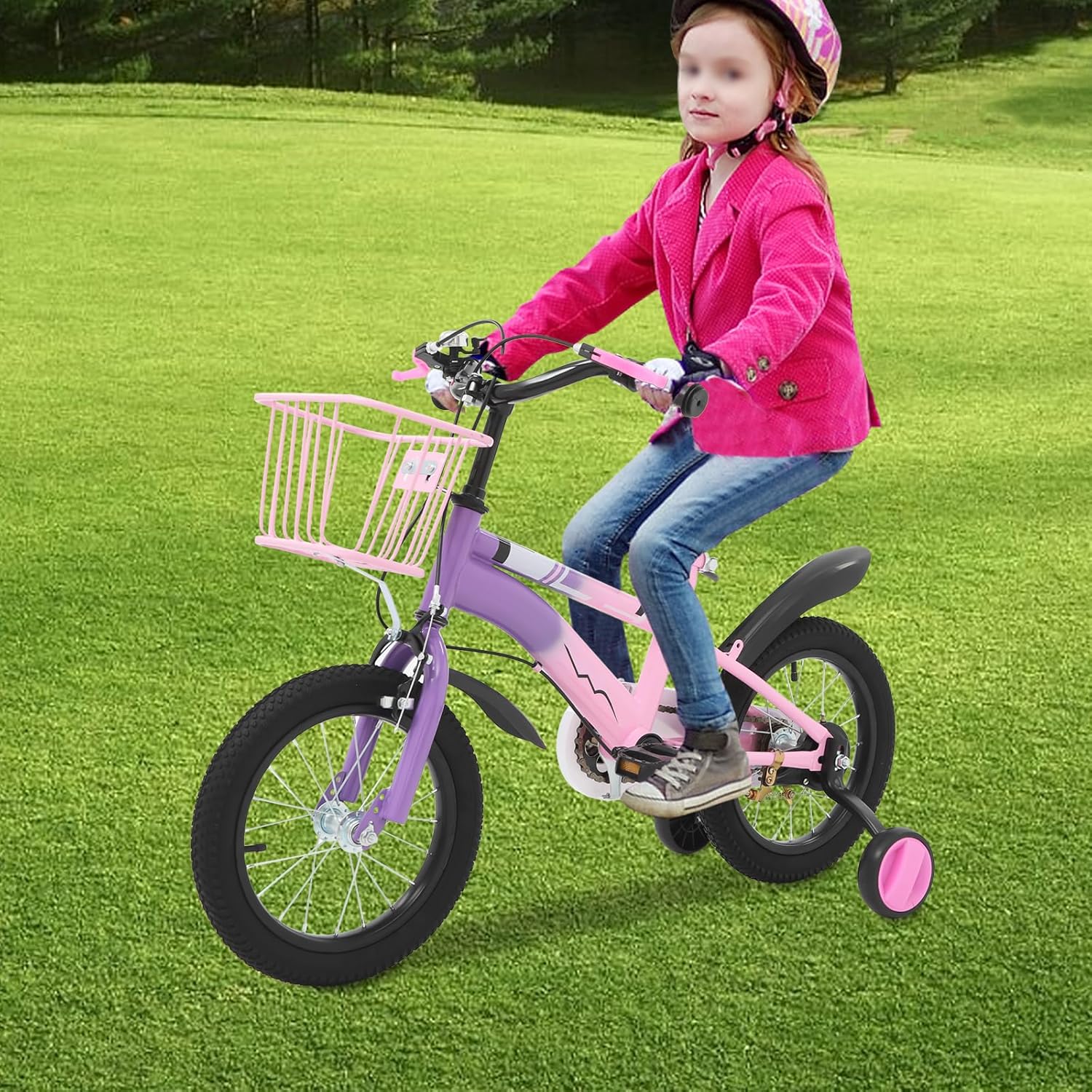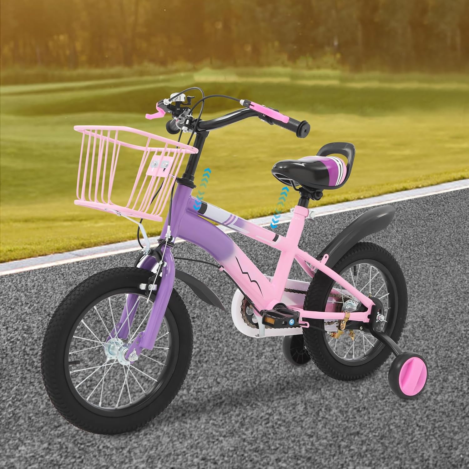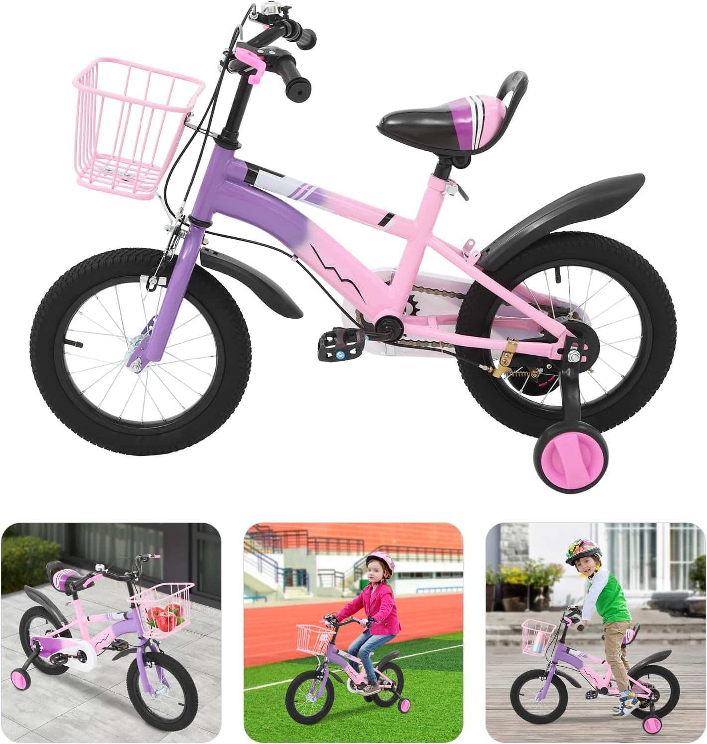Top-Angebot: CUMELLIIR Kinderfahrrad 14 Zoll Jungen Mädchen, Fahrrad Mit Stützräder Und Korb, Höhe Einstellen, Hoher Kohlenstoffstahl Fahrrad Kinder Ab 3 4 5 6 Jahre, Blau/Lila/Beige
