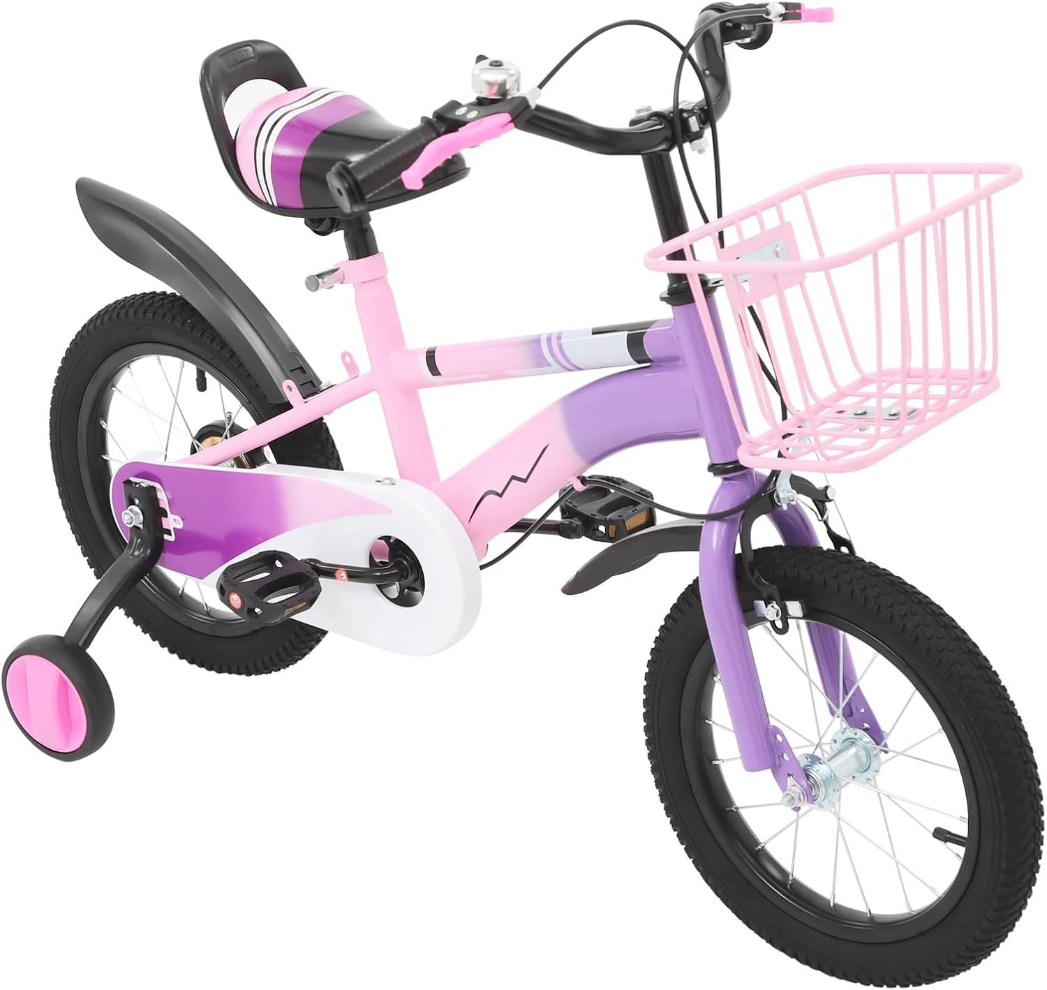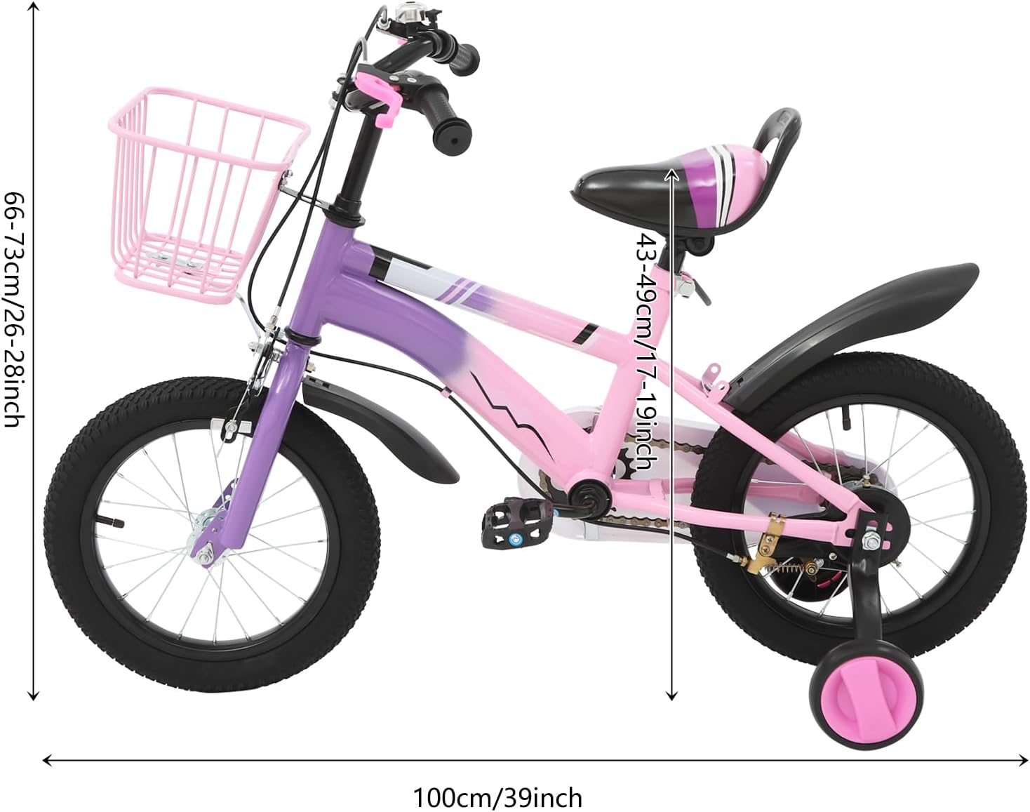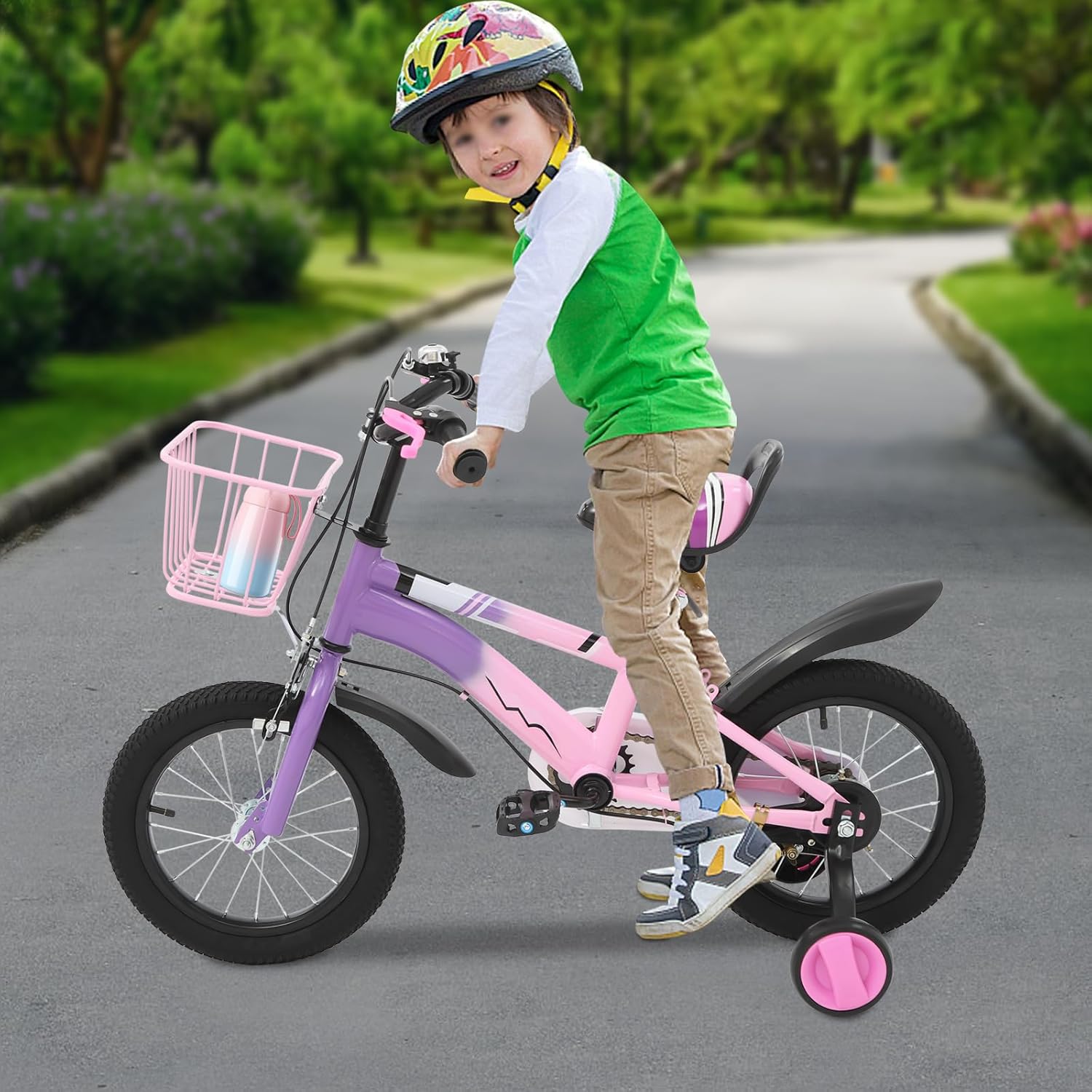 Top-Angebot: CUMELLIIR Kinderfahrrad 14 Zoll Jungen Mädchen, Fahrrad Mit Stützräder Und Korb, Höhe Einstellen, Hoher Kohlenstoffstahl Fahrrad Kinder Ab 3 4 5 6 Jahre, Blau/Lila/Beige