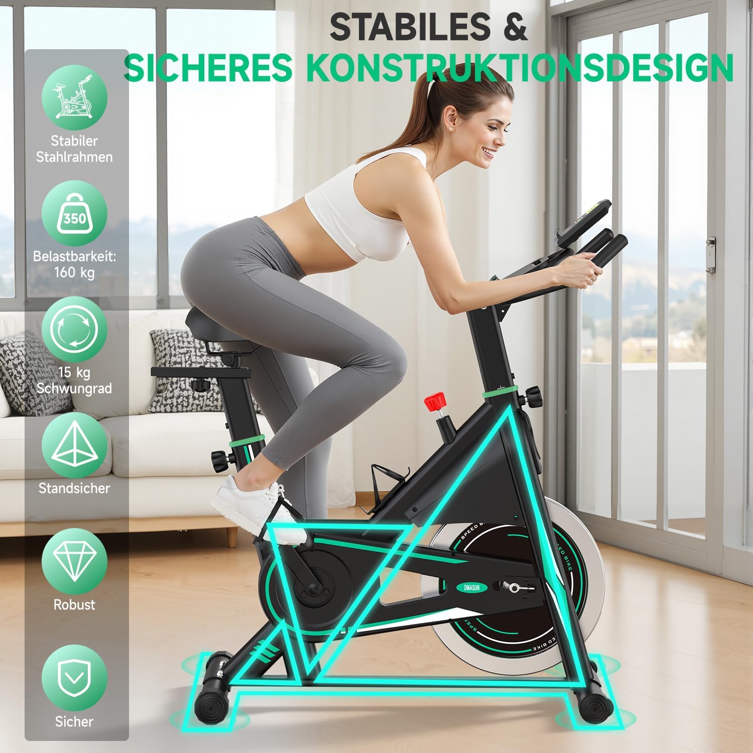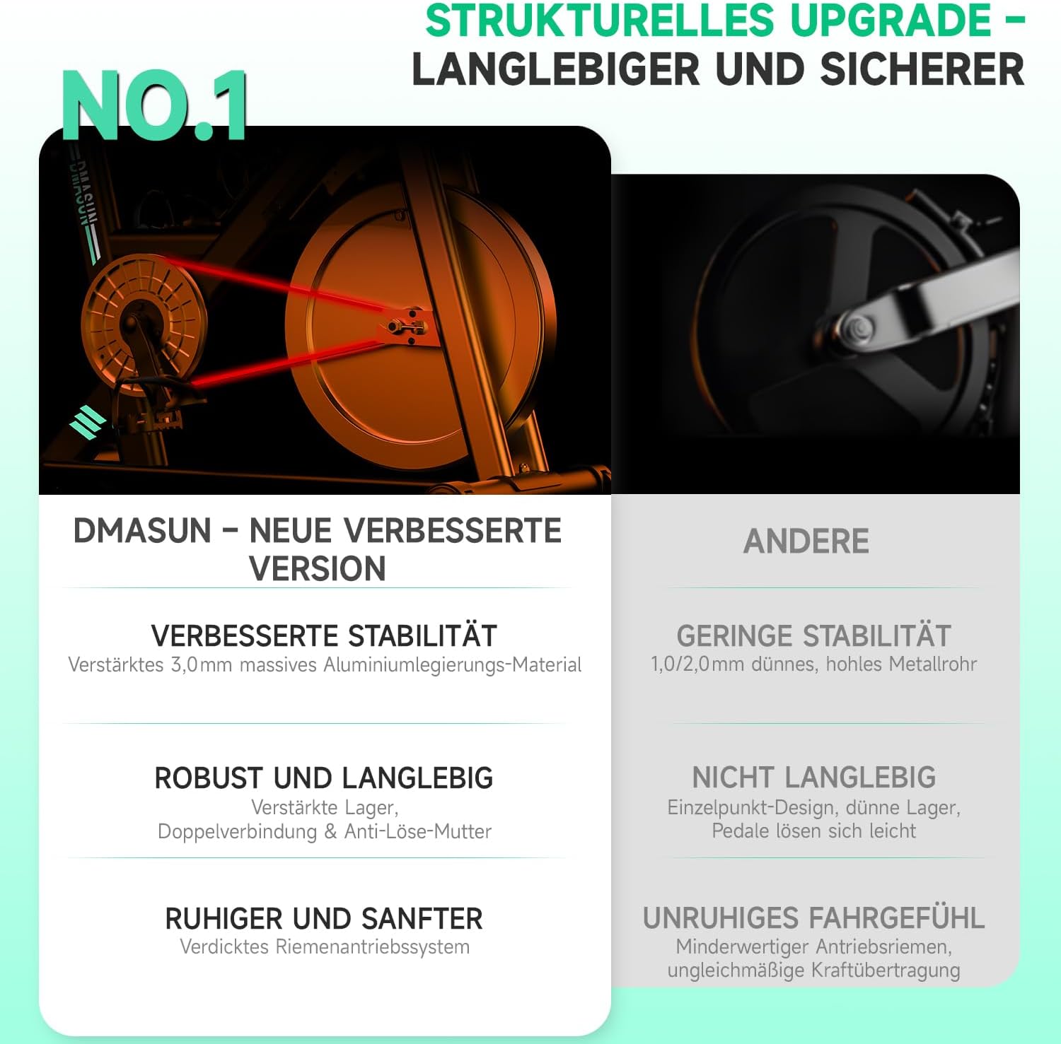 Das DMASUN Upgraded Exercise Bike, Quiet Home Trainer Bicycle with 0-100% Resistance, LCD Display & Tablet Holder, Professional Ergometer Exercise Bike with Comfortable Seat, Up to 160 kg ist ideal für Hobbyradler, die ein zuverlässiges Fahrrad suchen.