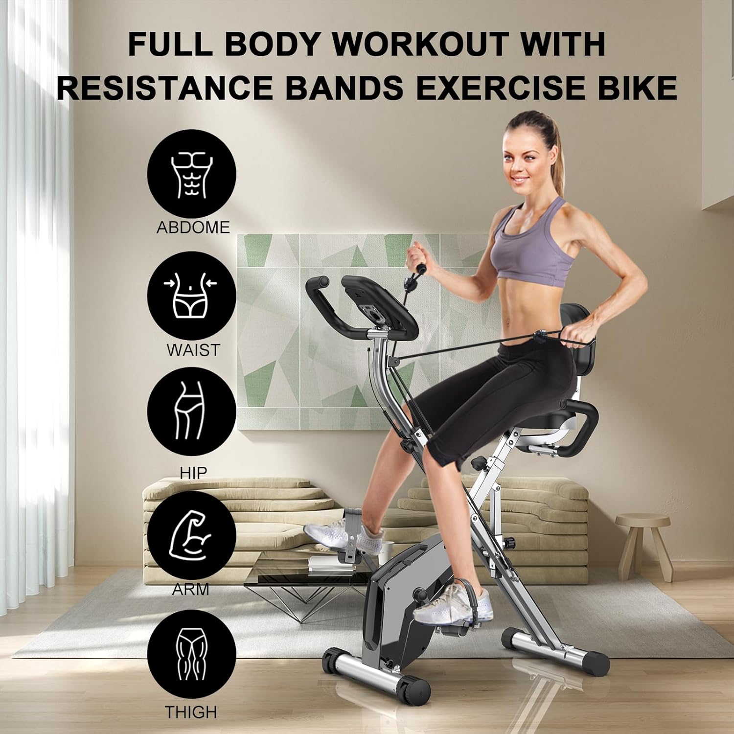 Jetzt entdecken: Dskeuzeew Home Trainer Bicycle Foldable Ergometer Exercise Bike with LCD Monitor and Integrated Resistance Band Magnetic 4-in-1 Fitness Bike with Comfortable Seat Cushion 150 kg Weight Capacity