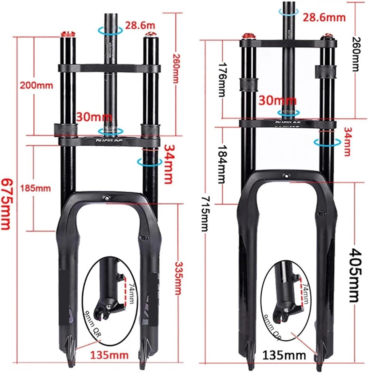 Top-Angebot: DUOCAI MTB Fork M+T+B Fork 20 26 Inch Fat Bike Fork Double Shoulder Mountain Bike Suspension Fat Tyre Bicycle Air Fork for Snow Beach Bike (Fork 26 x 4.0 inches)