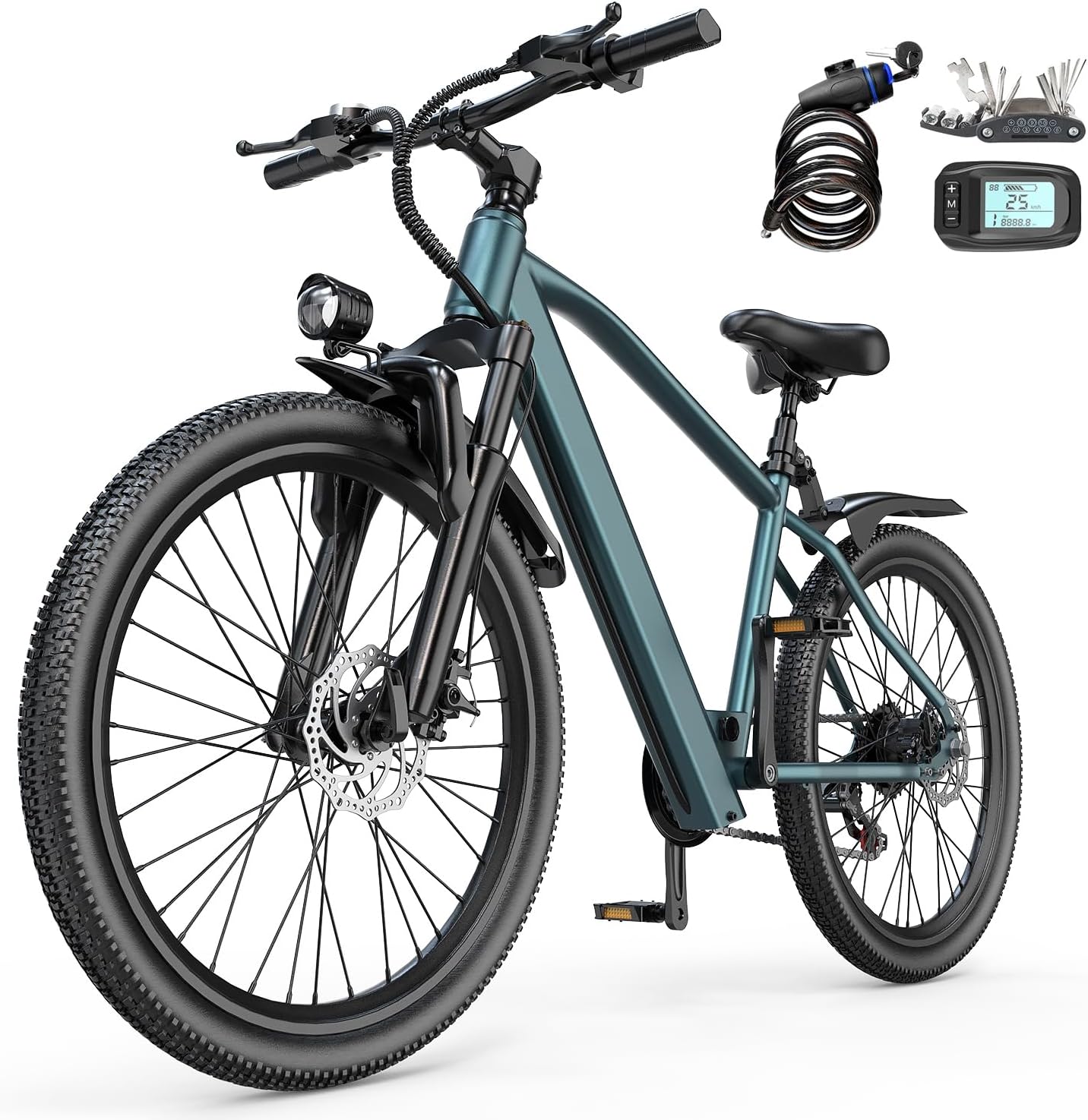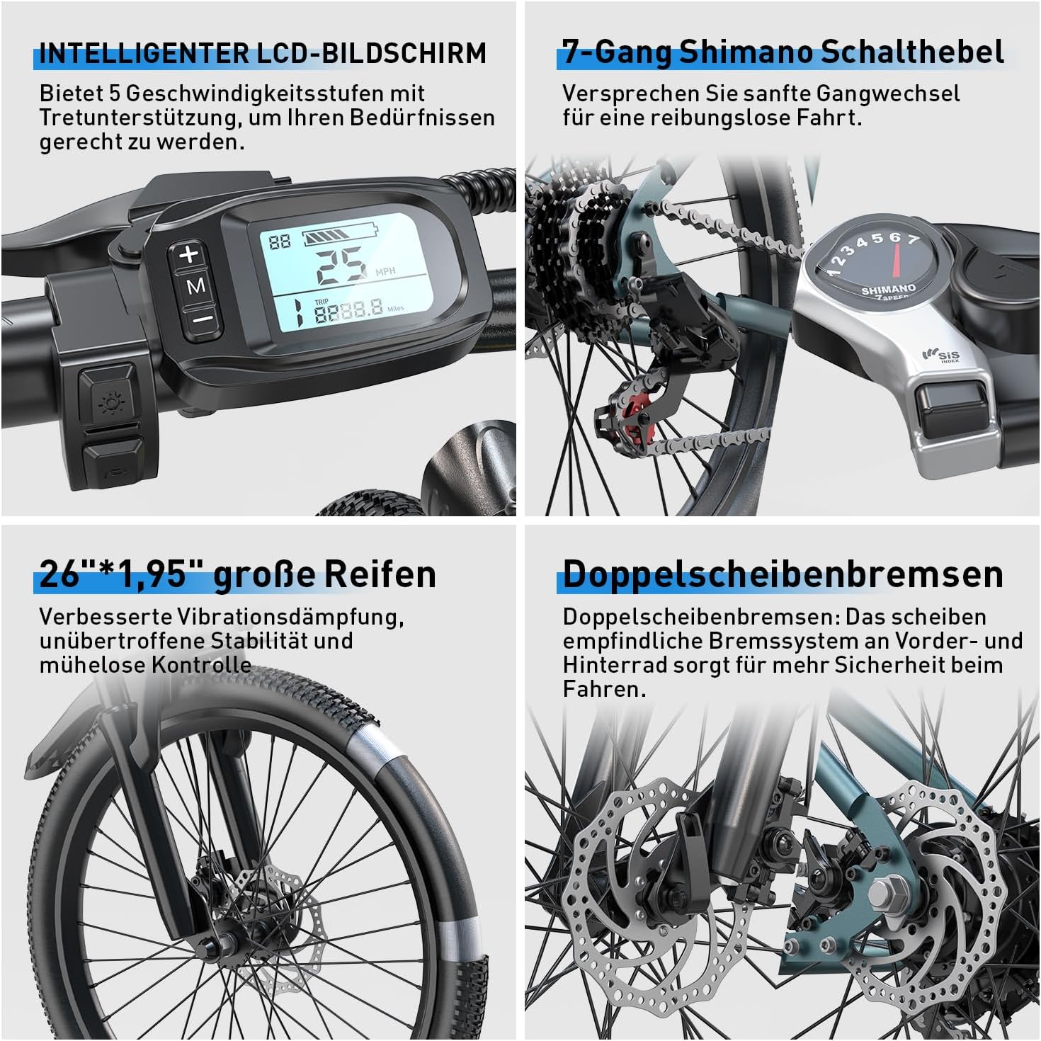 Mit dem E-Bike 26 Inch 7-Speed High Carbon Steel Frame Electric Bicycle 250 W Motor 10 Ah Battery Top Speed 25 km/h City E-Bike with LCD Display, Ideal for Men and Women bekommst du Qualität, Komfort und Stil – perfekt für deine nächste Tour.