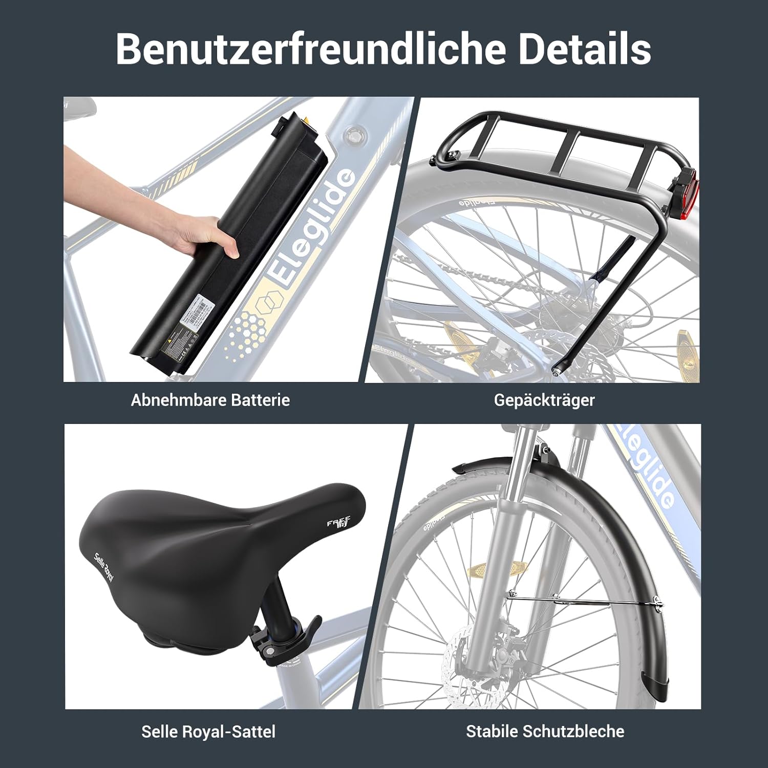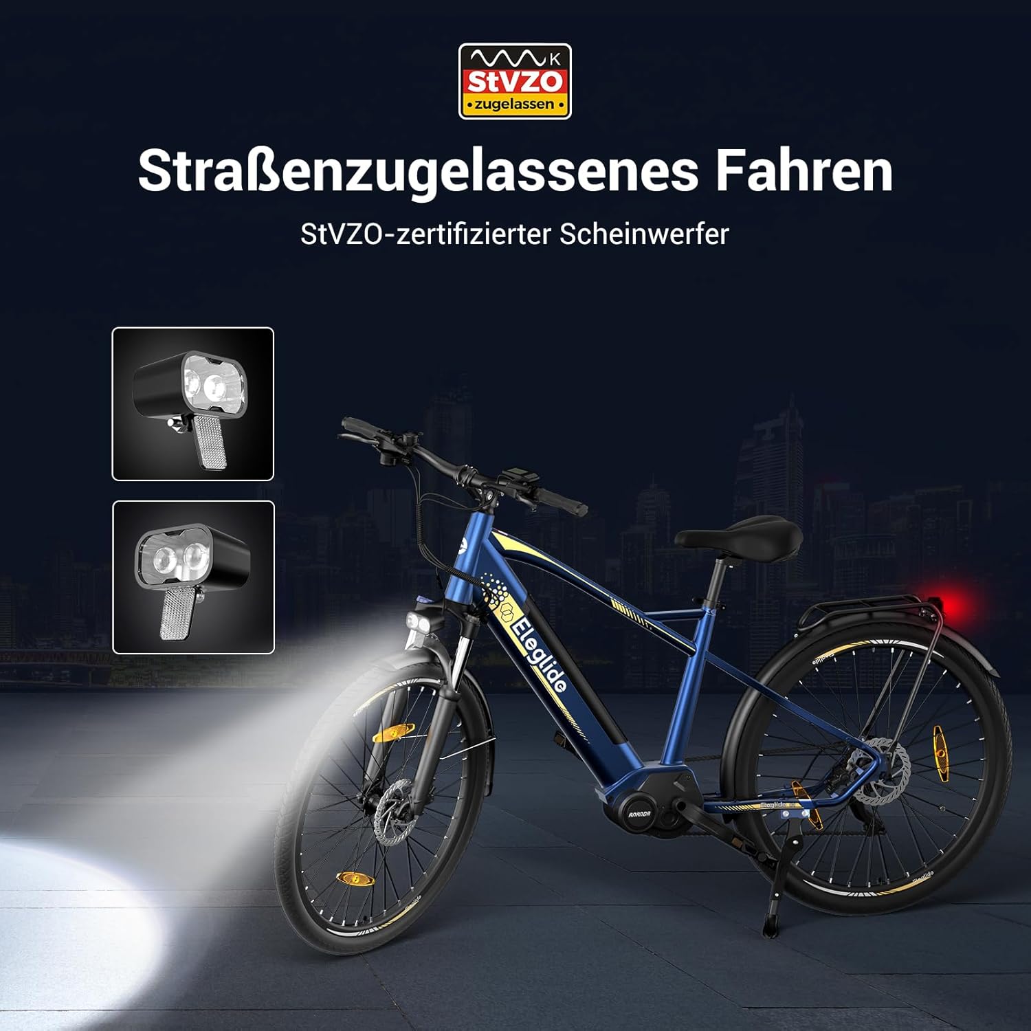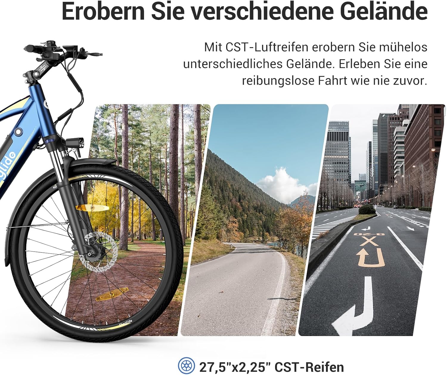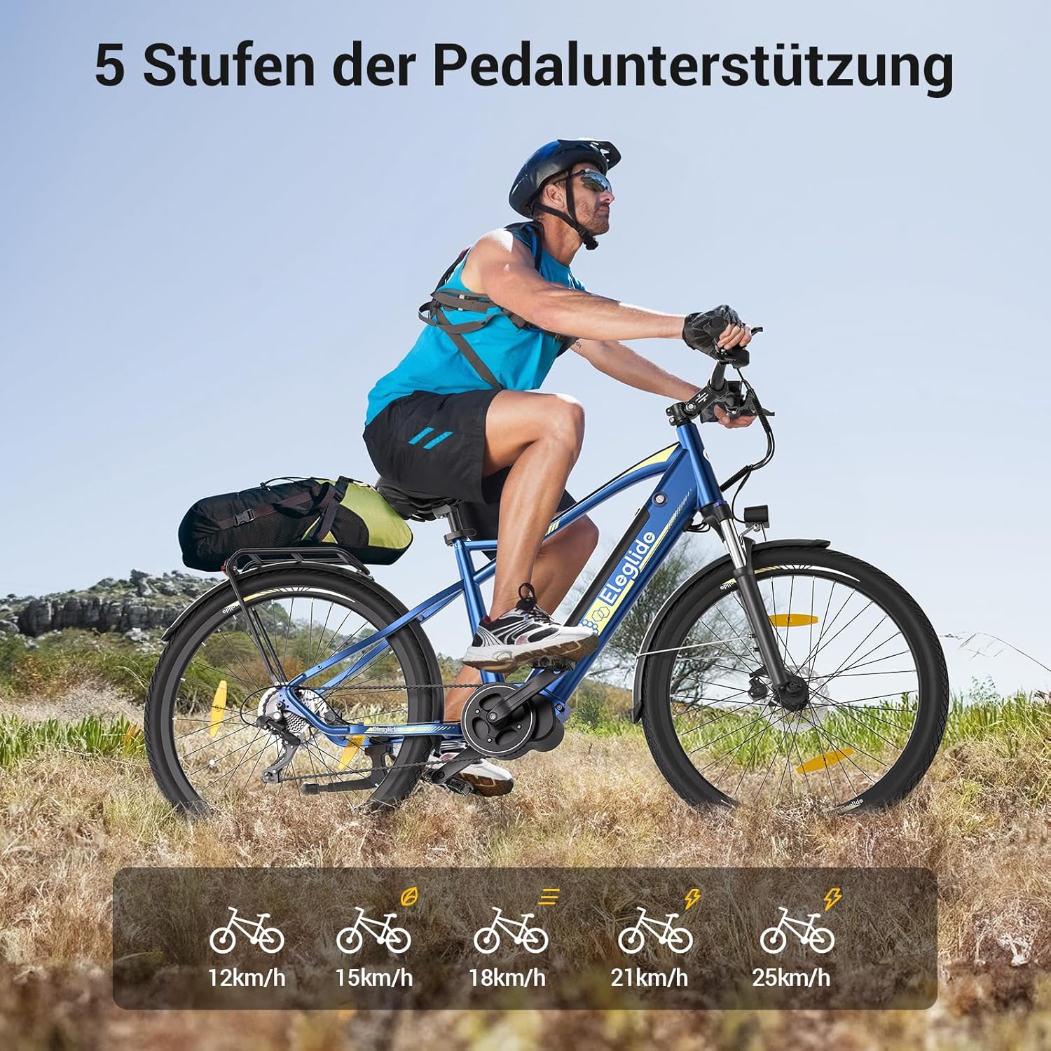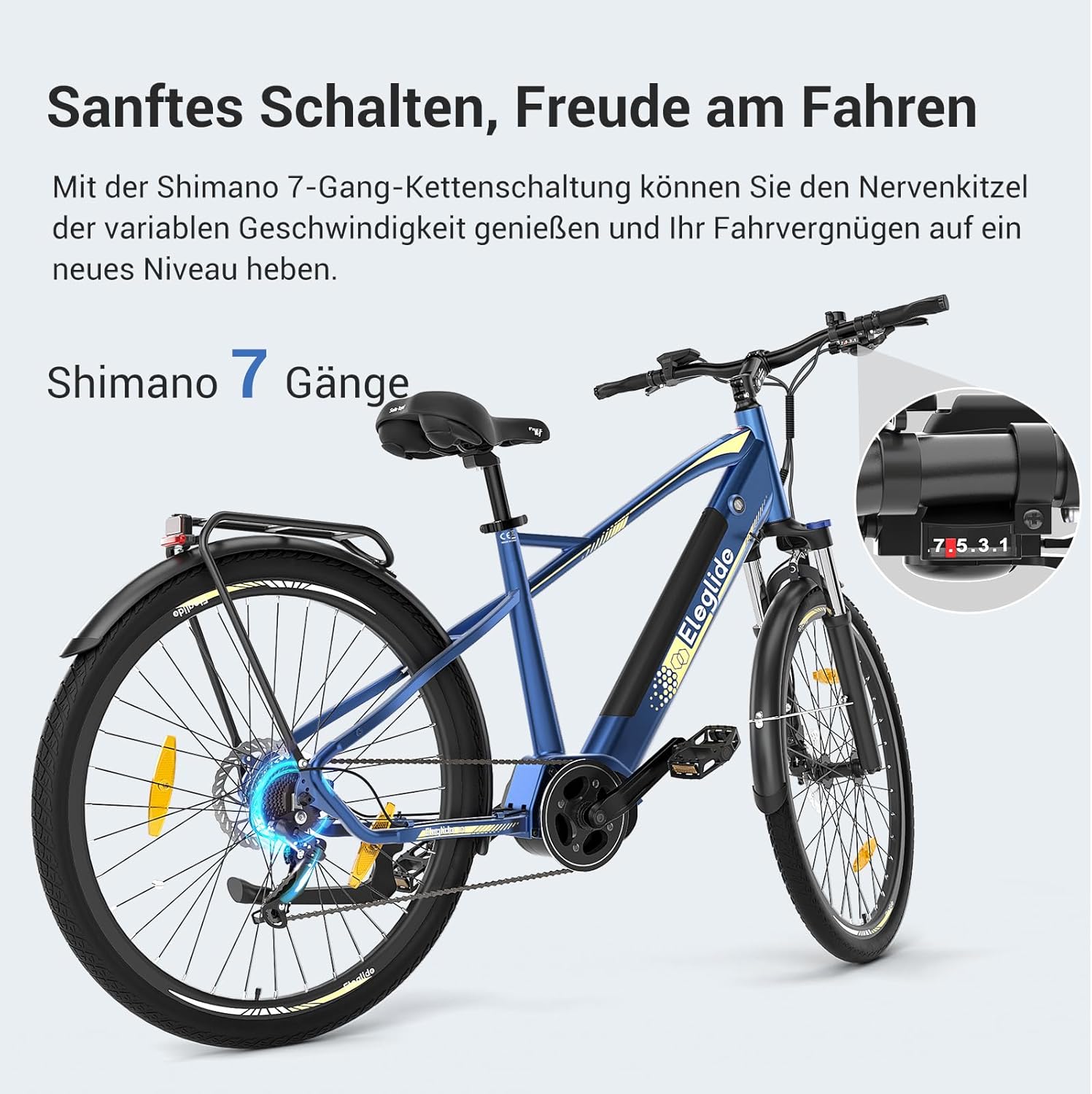 Top-Angebot: Eleglide C1/C1 ST E-Bike Trekking, 27,5 Zoll Elektrofahrrad für Damen und Herren, 250W 70N.m Mittelmotor E Bike, 14,5 Ah Lithium-Akku für Lange 150KM, 7 Gänge Trekking Ebike mit APP, Cityräder