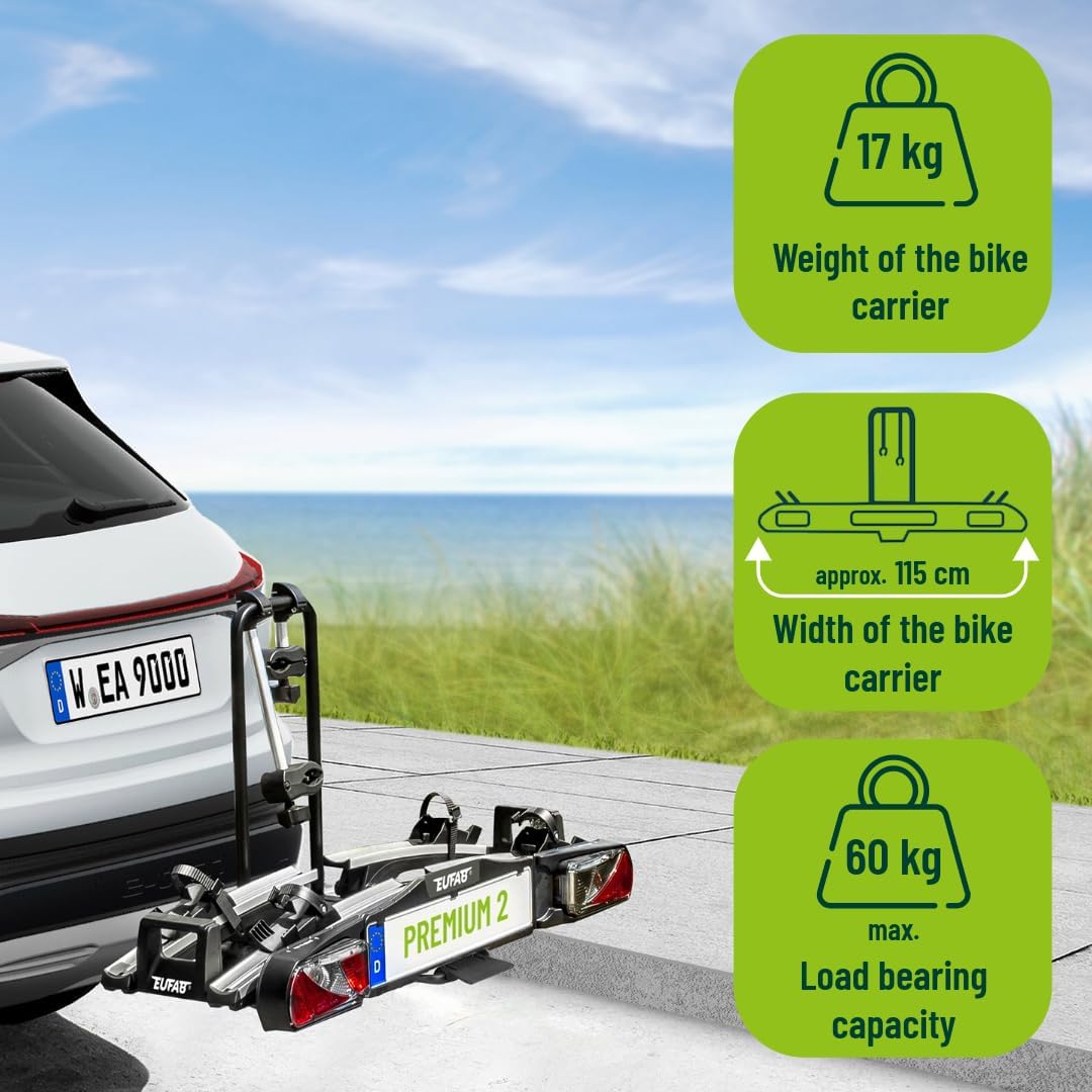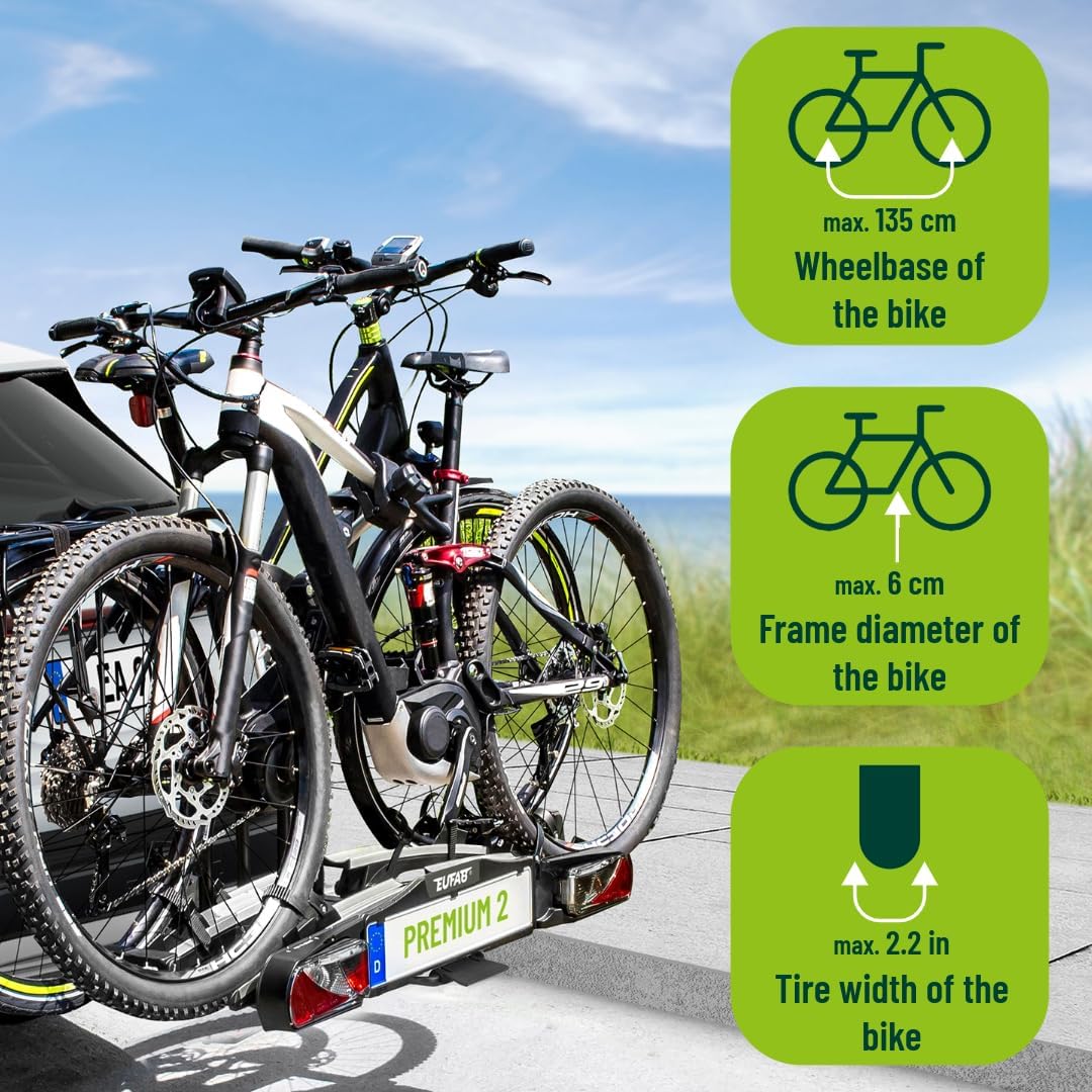 Top-Angebot: EUFAB 11521 Premium 2 Bicycle Carrier, Suitable for E-Bikes, Completely Pre-Assembled, Anti-Theft Protection, for 2 Bicycles, for Towing Hitch, Black, Silver