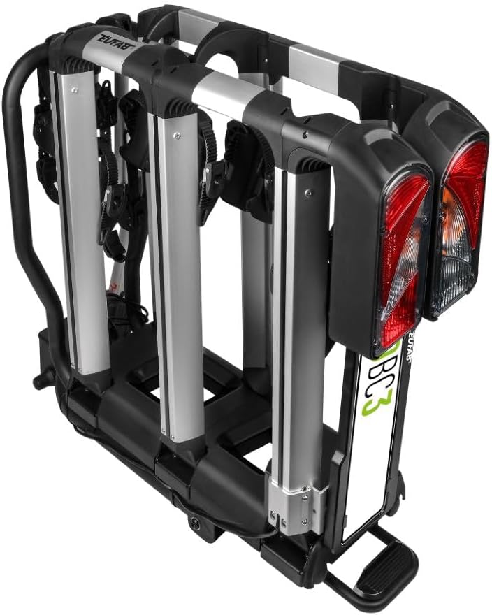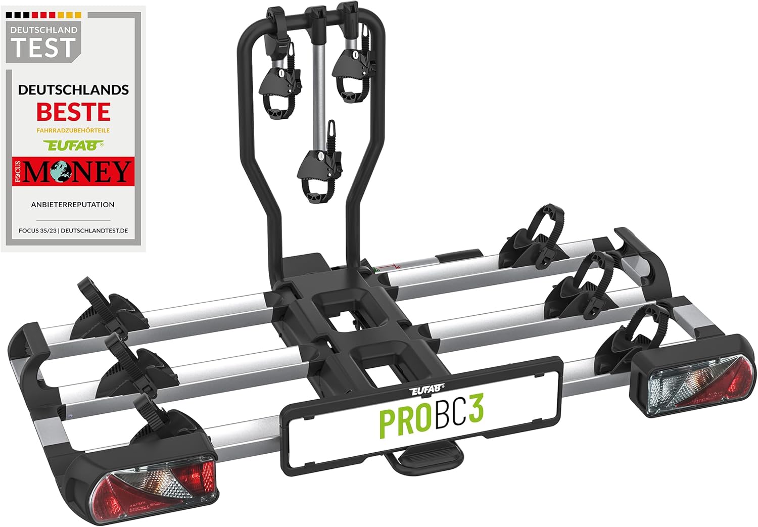 Top-Angebot: EUFAB 11602 ProBC3 Bicycle Carrier for 3 Bicycles / E-Bikes, 60 kg Payload, Pre-Assembled, Foldable with Foot Pedal, Expandable to 4, Aluminium/Steel Rails