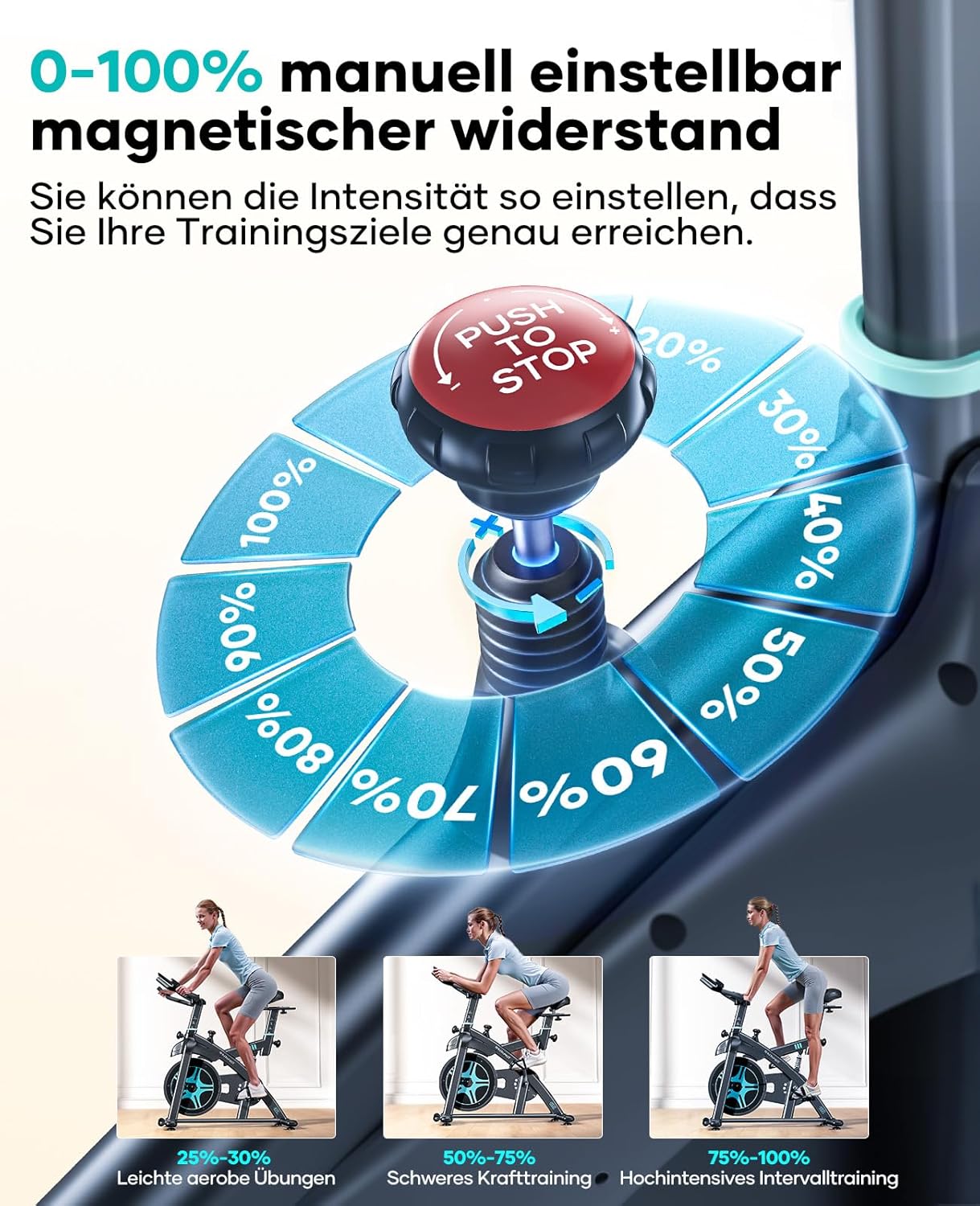 Top-Angebot: Exercise bike with app, 0-100% magnetic resistance, stationary, 15 kg flywheel, ultra-quiet, ergometer spinning bike, indoor with LCD monitor, up to 160 kg, tablet holder