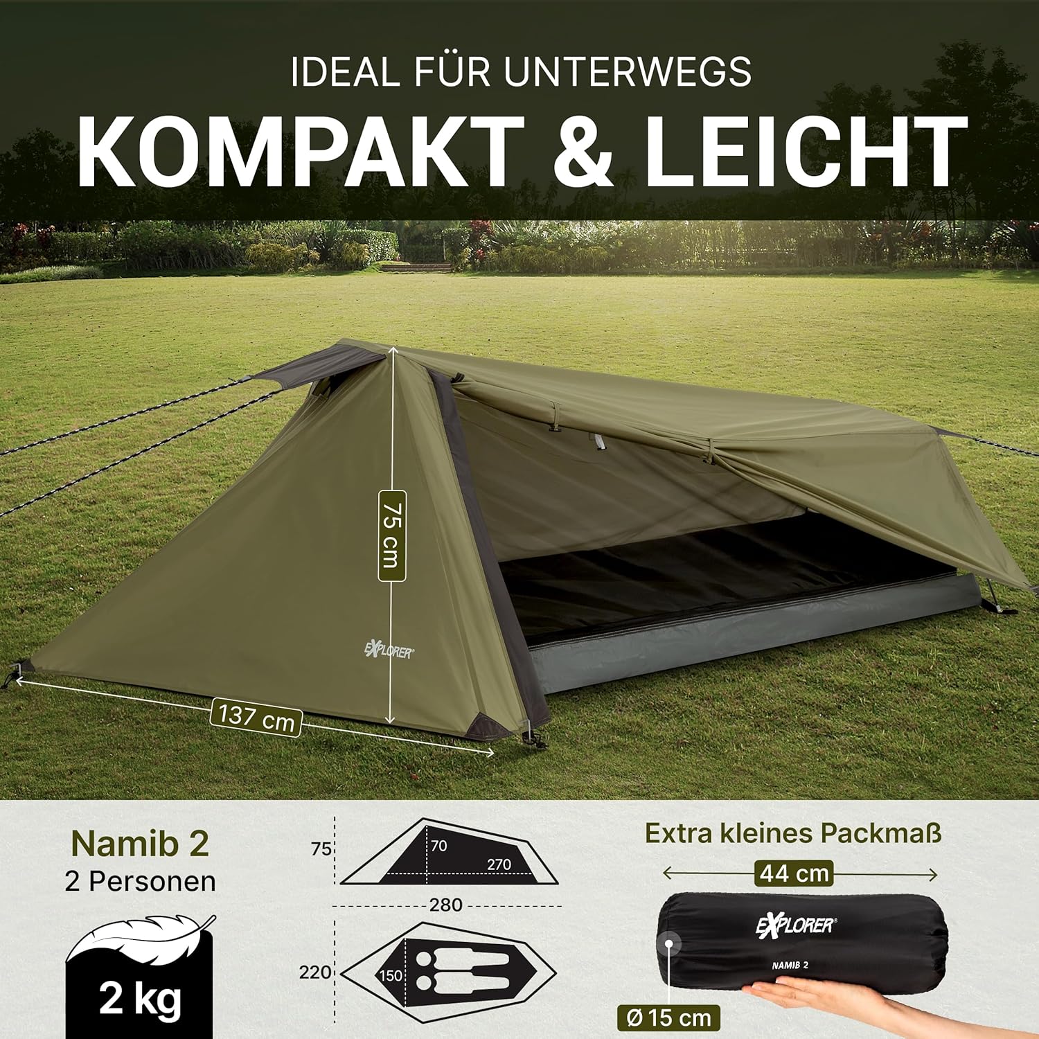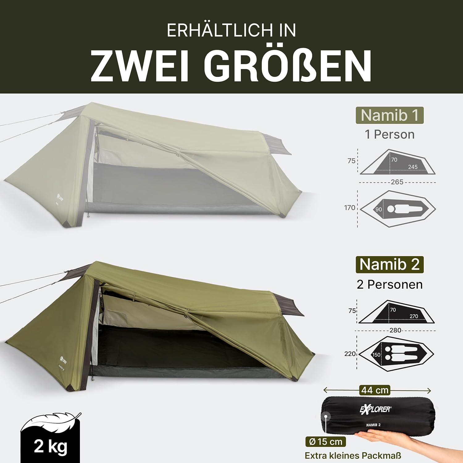 Top-Angebot: EXPLORER Namib 1 & 2 Person Tent Small Pack Size Ultralight for Bicycle or Motorcycle Travel 1-2 People 3000 mm Hydrostatic Head with Separate Inner Tent Hiking Trekking Camping