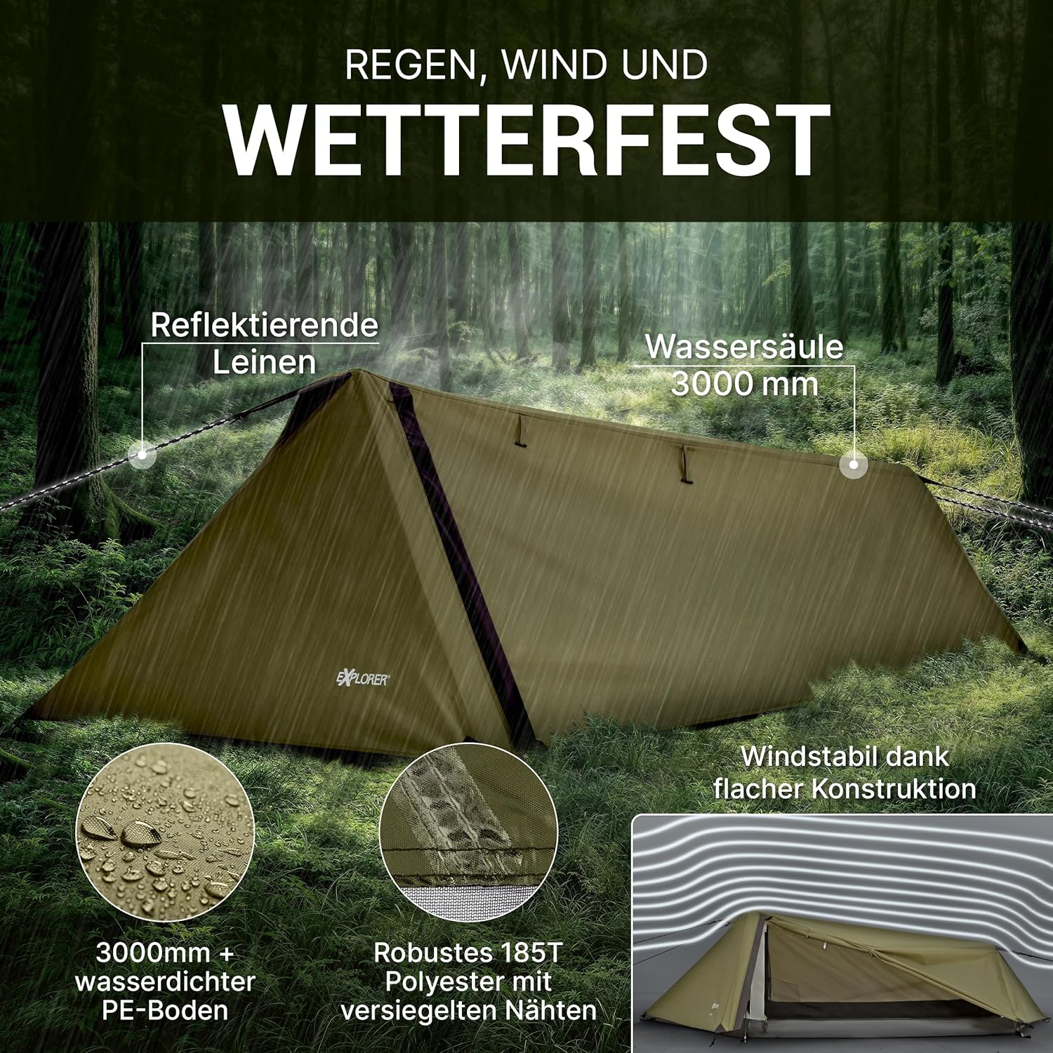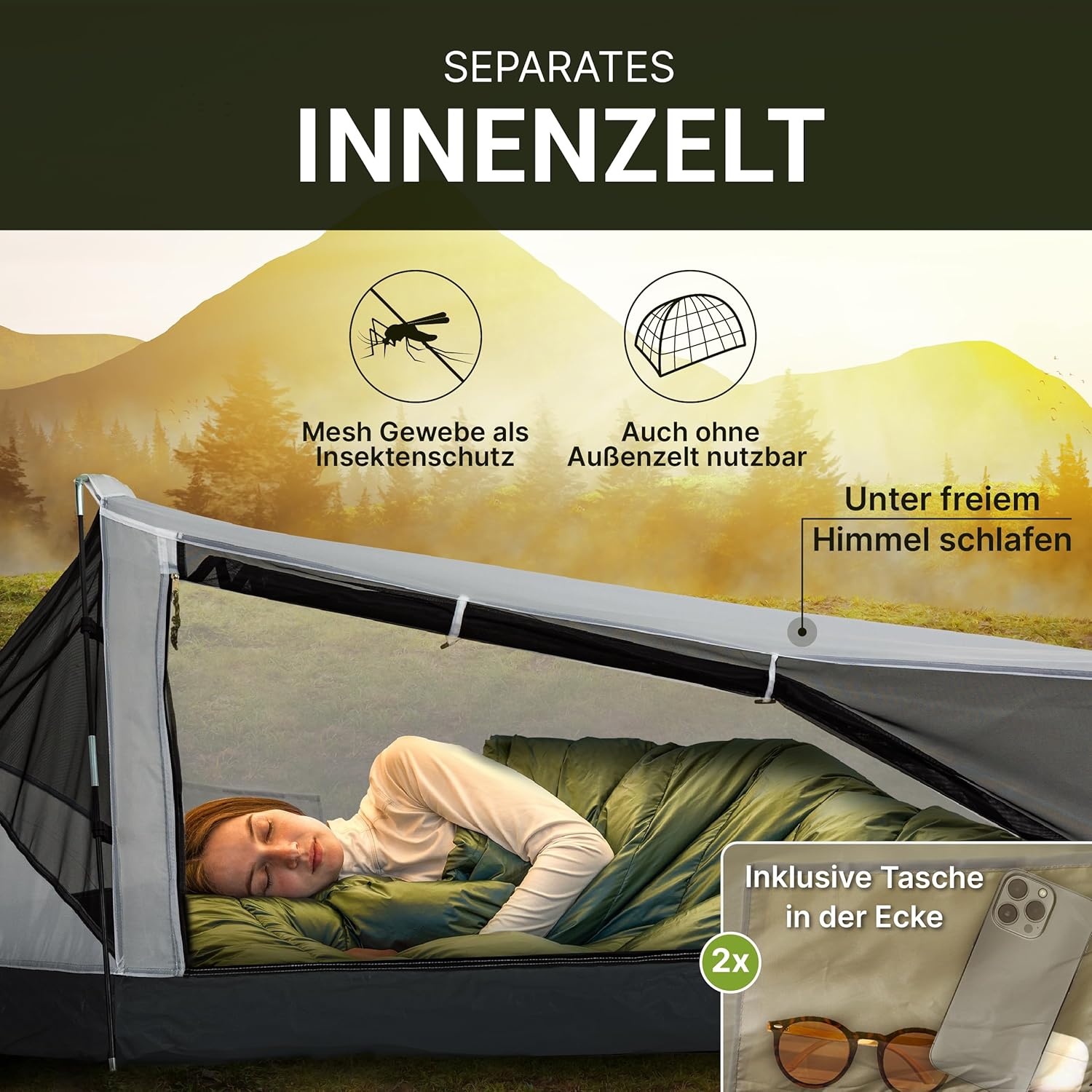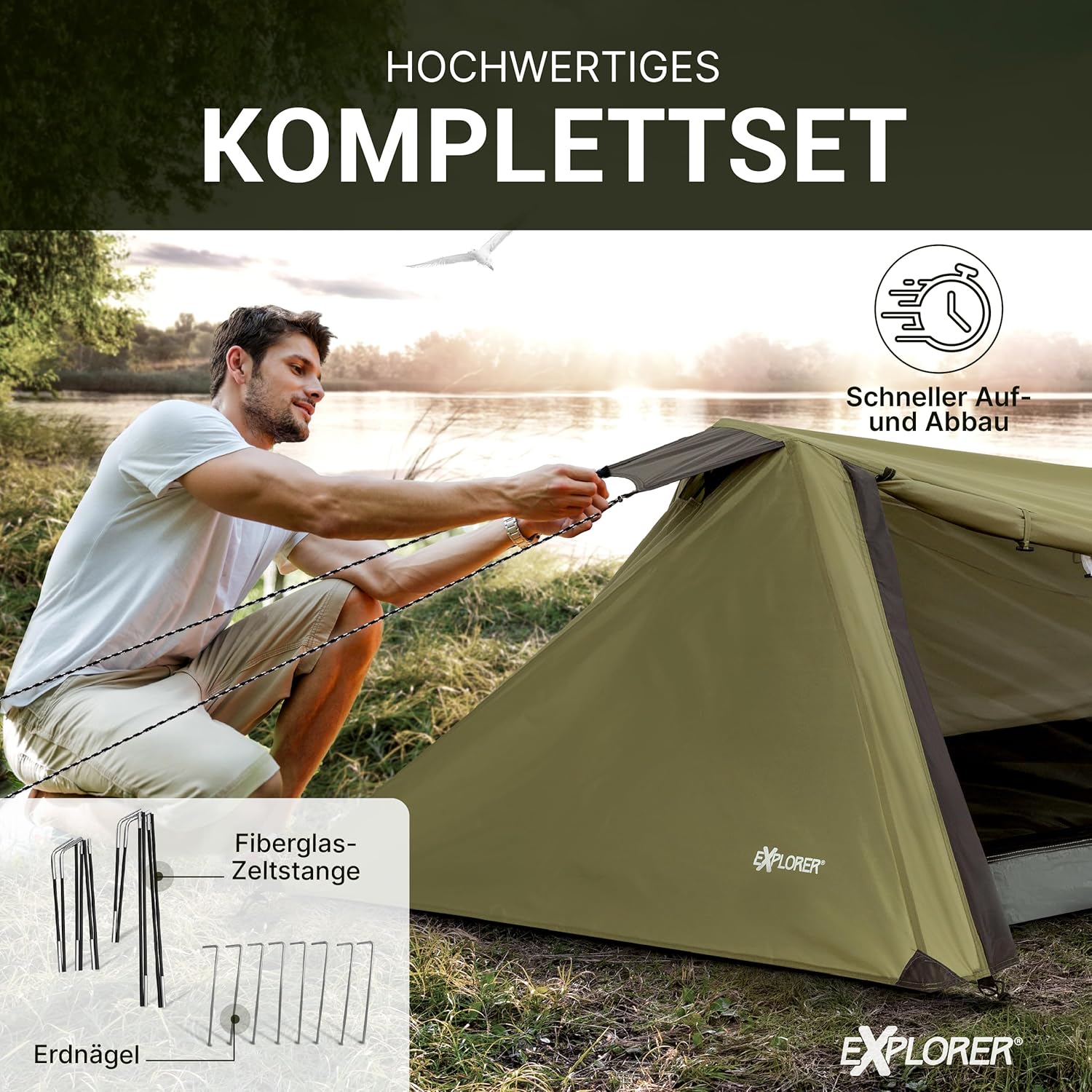 Mit dem EXPLORER Namib 1 & 2 Person Tent Small Pack Size Ultralight for Bicycle or Motorcycle Travel 1-2 People 3000 mm Hydrostatic Head with Separate Inner Tent Hiking Trekking Camping bekommst du Qualität, Komfort und Stil – perfekt für deine nächste Tour.