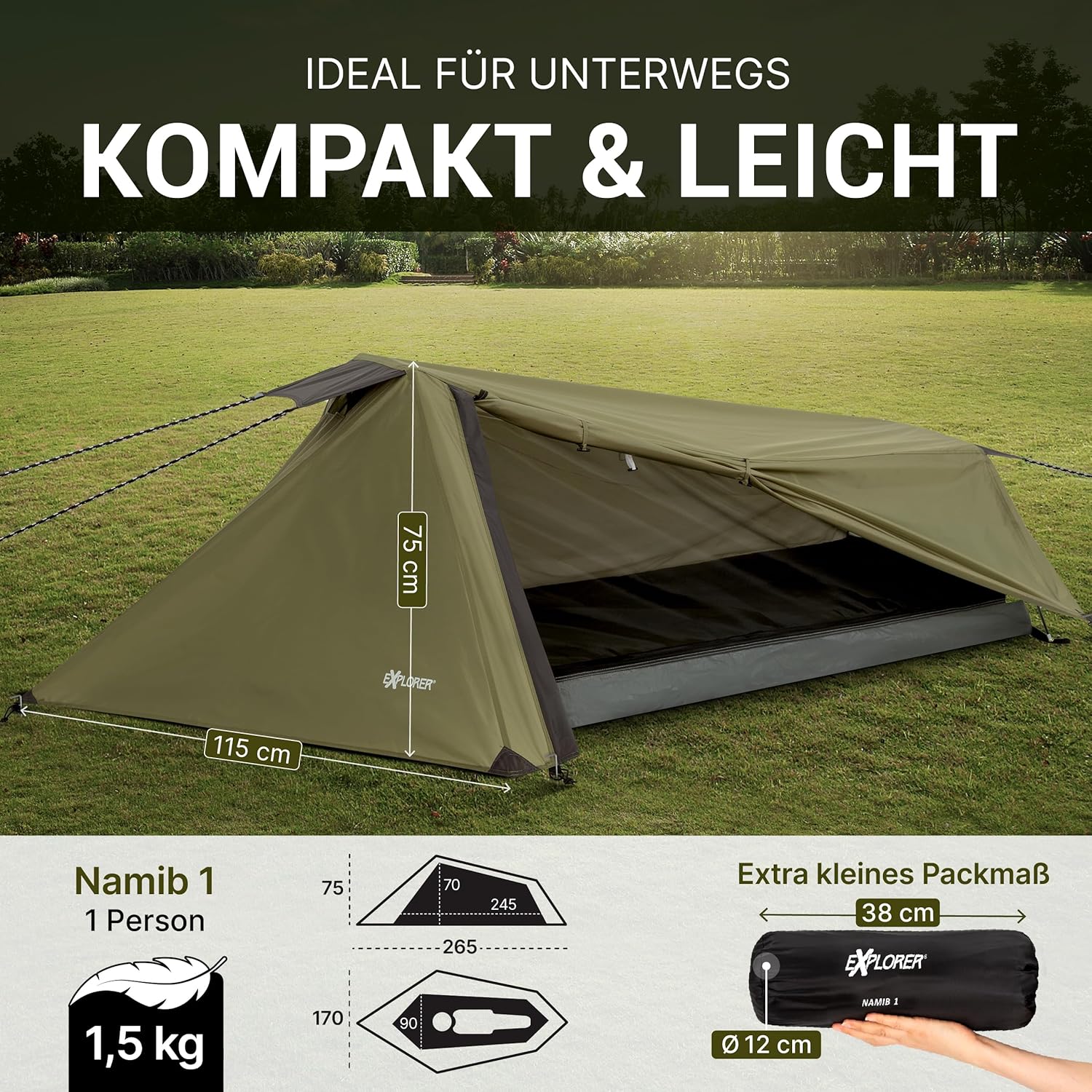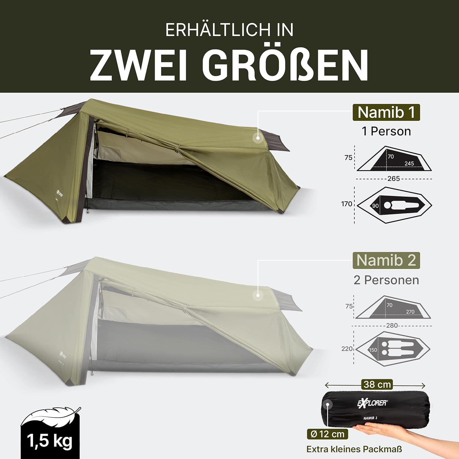 Jetzt entdecken: EXPLORER Namib 1 & 2 Person Tent Small Pack Size Ultralight for Bicycle or Motorcycle Travel 1-2 People 3000 mm Hydrostatic Head with Separate Inner Tent Hiking Trekking Camping