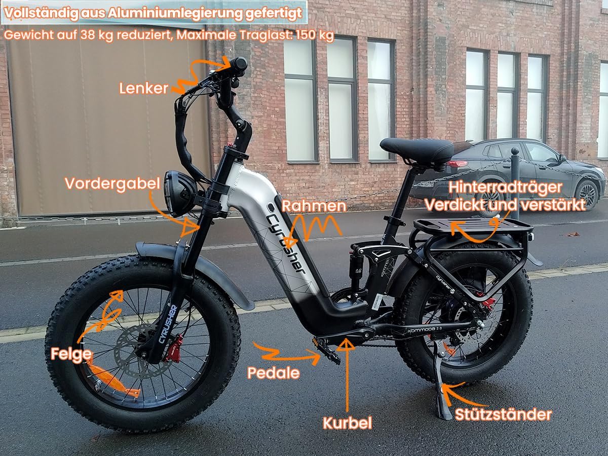 Mit dem Extrbici Kommoda 2.0 20 Inch E-Bike for Adults: 250 W 25 km/h, 120 km 48 V 20 Ah, Air Suspension, Hydraulic Disc Brakes, 4 Inch Fat Tyres, Aluminium Frame bekommst du Qualität, Komfort und Stil – perfekt für deine nächste Tour.
