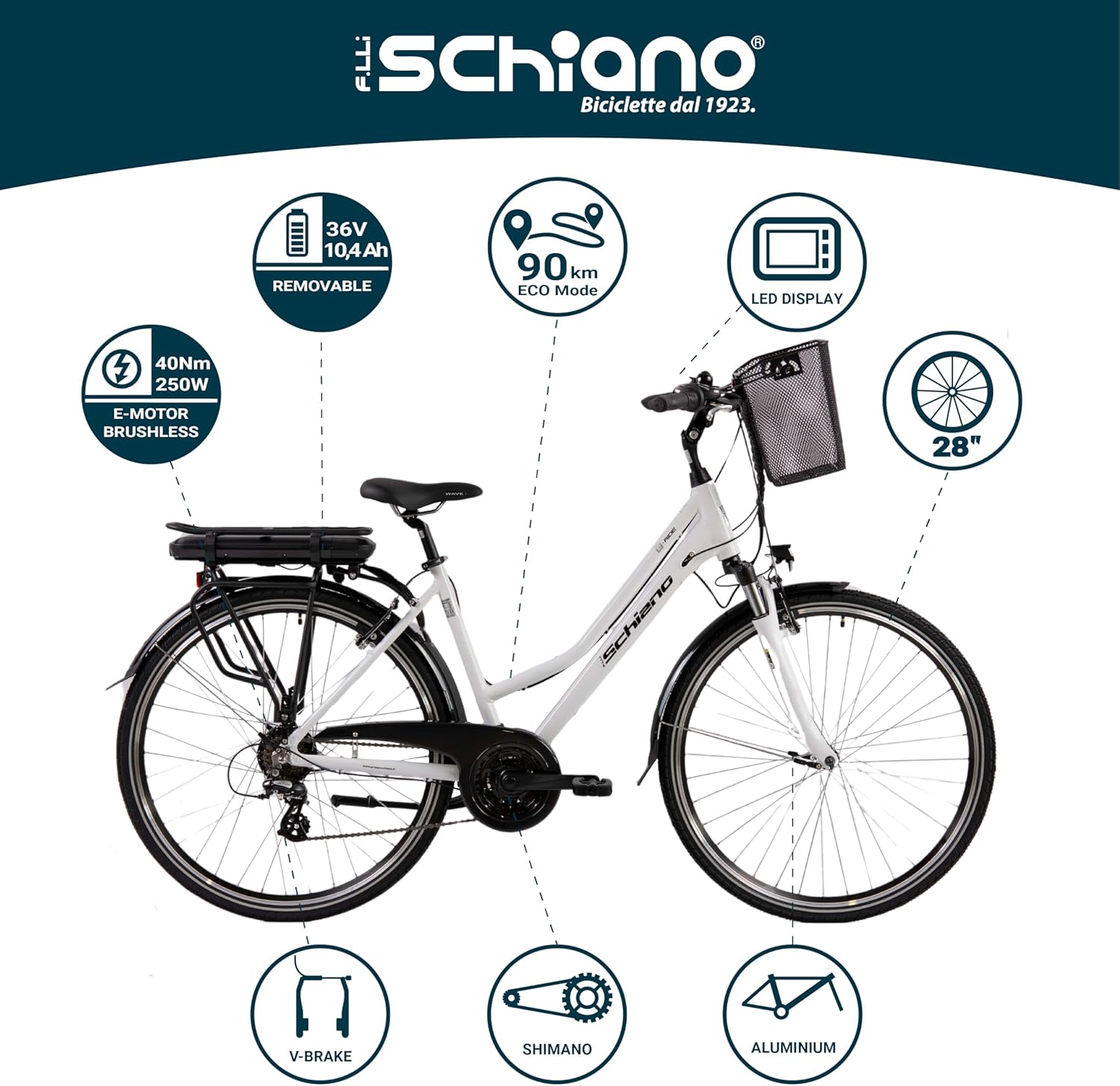 Jetzt entdecken: F.LLI Schiano E-Ride, E Bike Trekking 28 Zoll, 36V 14.5Ah Abnehmbarer Akku, Motor 250W 40Nm, Trekking EBike für Herren/Damen