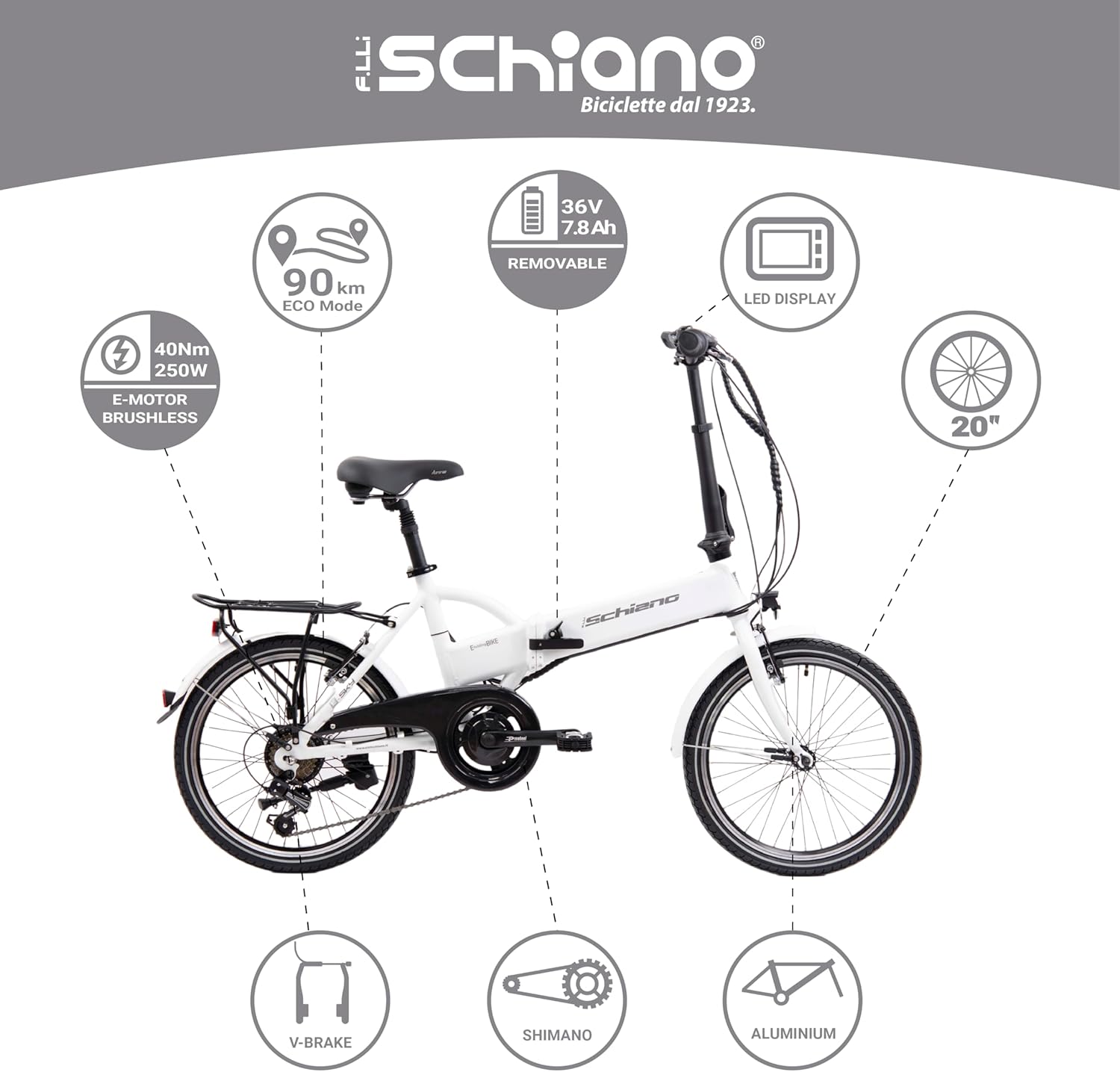 Mit dem F.lli Schiano E-Sky 20 inch unisex adult folding e-bike with 250 W motor bekommst du Qualität, Komfort und Stil – perfekt für deine nächste Tour.