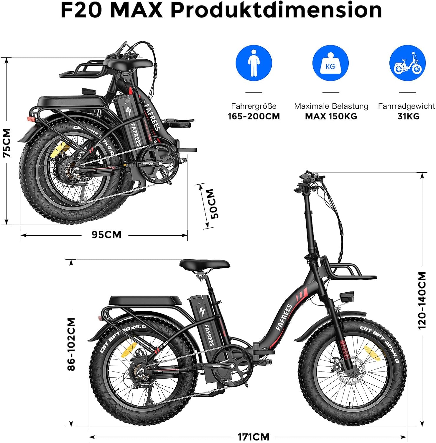 Jetzt entdecken: Fafrees E Bike for Men Women, 20 Inch Electric Bicycle Folding Bike with 48 V 22.5 Ah Removable Battery, 4.0 Fat Tyre Mountain E-Bike with 7S Gears, F20 Max