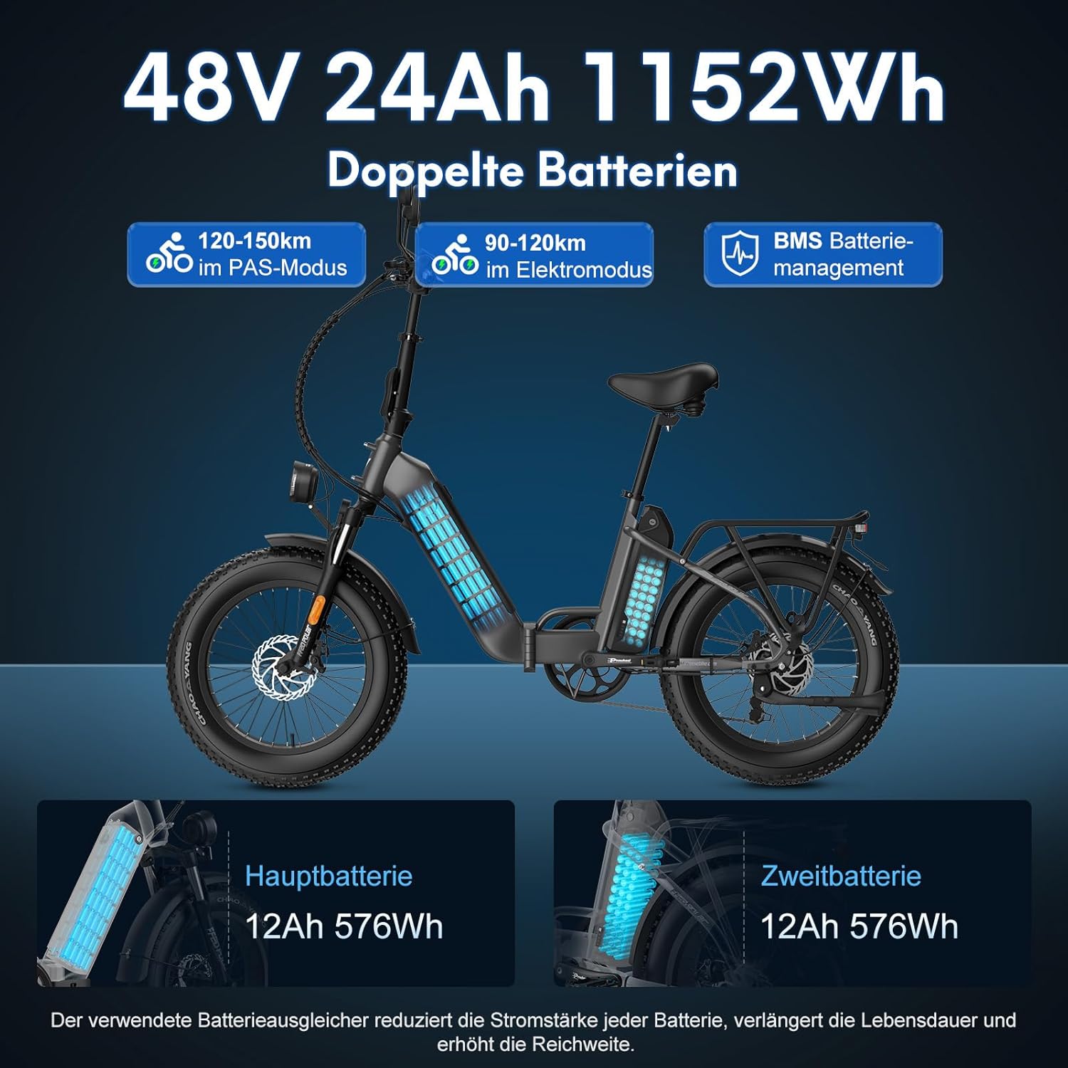 Das Fafrees FF20 Polar E-Bike Folding Bike 20 x 4.0 Inches, 500 W 45 km/h Ebike Men’s Double Batteries 24 Ah / 26.8 Ah, Fatbike Women’s Range 150 km/170 km, Electric Bicycle Bearing Weight 150 kg ist ideal für Alltagspendler, die ein zuverlässiges Fahrrad suchen.