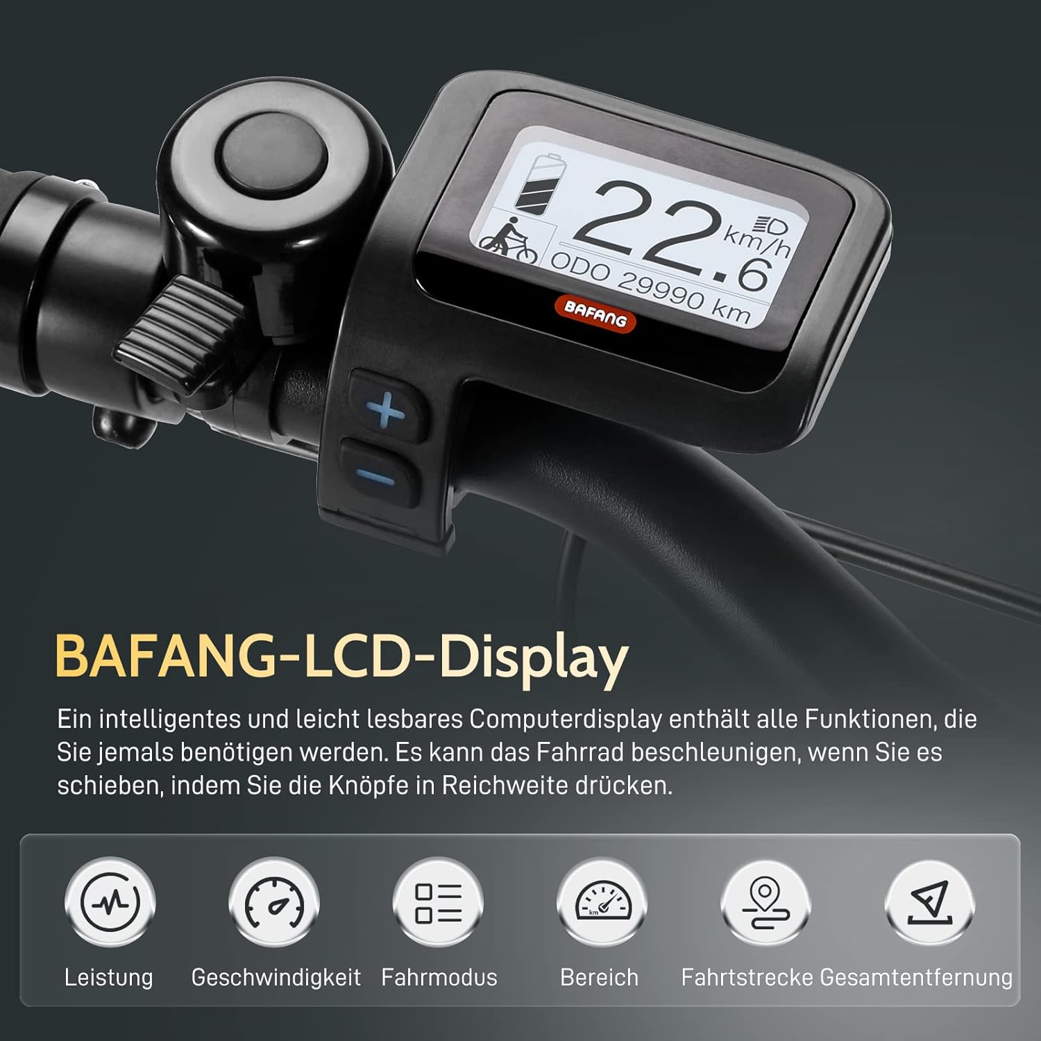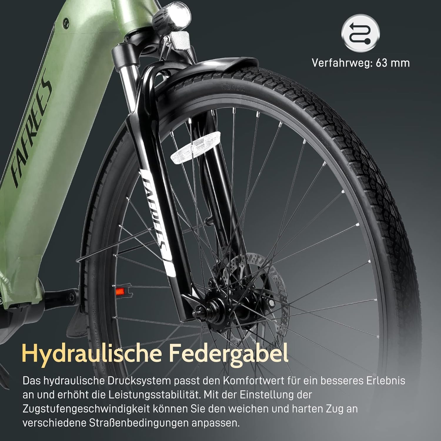 Mit dem Fafrees FM9 Citybike E Bike Women’s Battery 36 V 15 Ah up to 120 km Bafang Mid Motor with Road Legal Rear Light, [Official] Electric Bicycle Adult E-Bike Men 25 km/h, E Bicycle 65 N.m Torque bekommst du Qualität, Komfort und Stil – perfekt für deine nächste Tour.