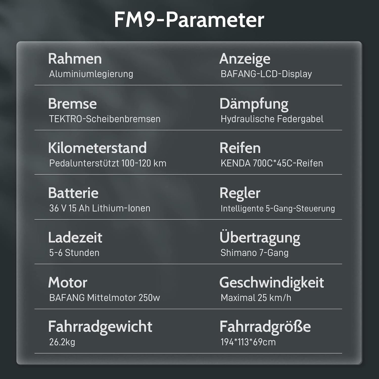 Top-Angebot: Fafrees FM9 Citybike E Bike Women’s Battery 36 V 15 Ah up to 120 km Bafang Mid Motor with Road Legal Rear Light, [Official] Electric Bicycle Adult E-Bike Men 25 km/h, E Bicycle 65 N.m Torque