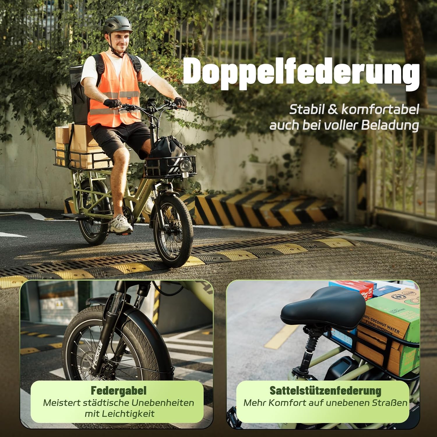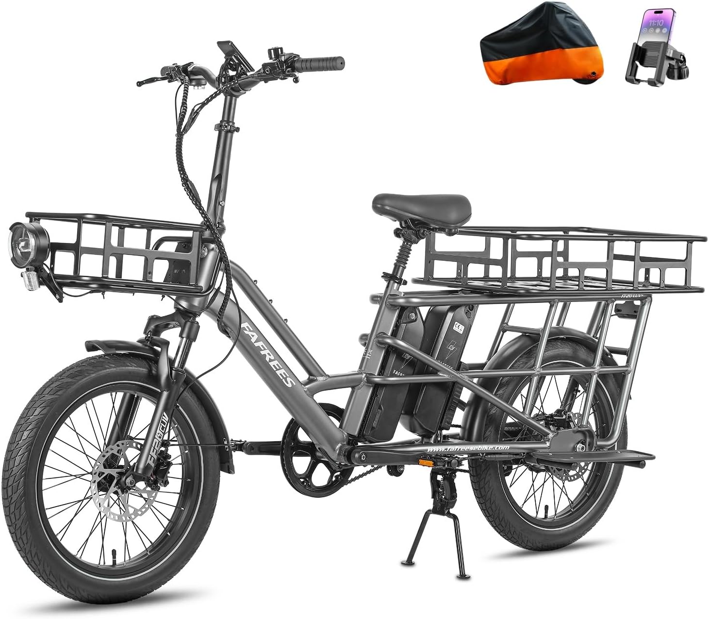 Top-Angebot: Fafrees Longtail E-Bike 20 x 3.0 inches, Electric Cargo Bike 250 W 25 km/h, Women’s 12 Ah x 2 Battery, Electric Bicycle 75 N.m Range 100-140 km, Load Capacity 200 kg