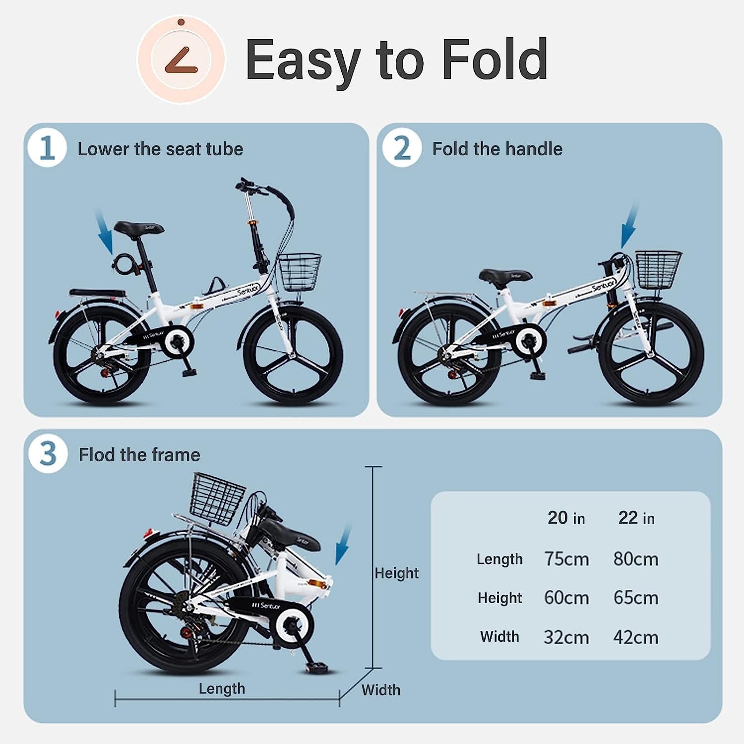Top-Angebot: Fahrrad Faltrad 7-Gang Faltrad Höhenverstellbares, kompaktes City-Pendlerrad, Rahmen aus kohlenstoffreichem Stahl Falträder A, 20 Zoll