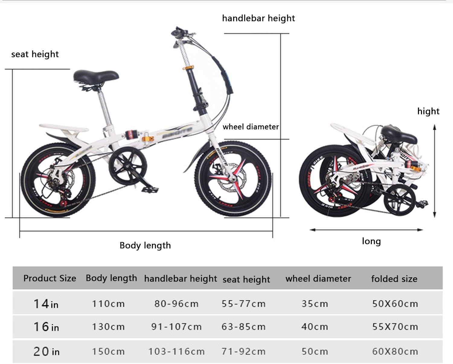 Jetzt entdecken: Fahrrad Faltrad Faltrad für Erwachsene 6-Gang-Schalthebel Höhenverstellbares vollgefedertes Stadtfahrrad Leichtes tragbares Fahrrad für Männer Damen A, 16 Zoll