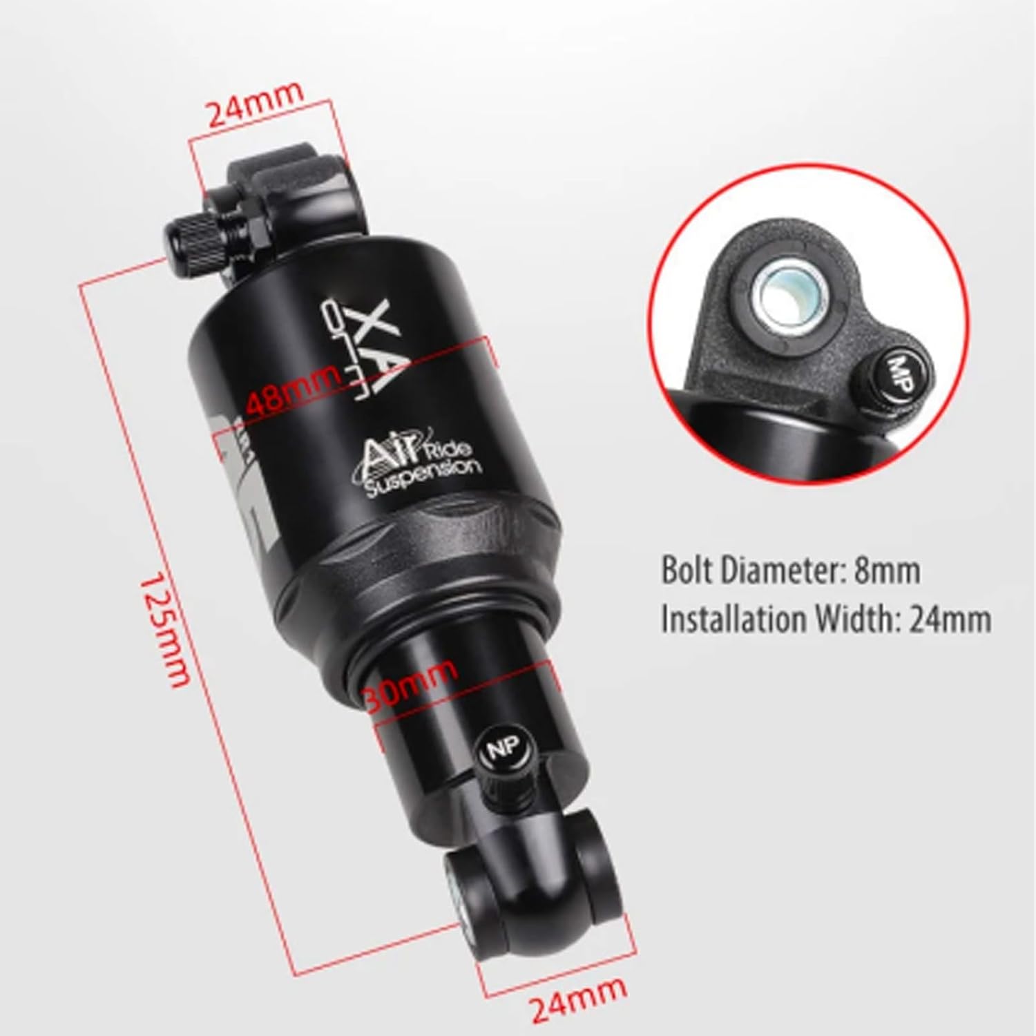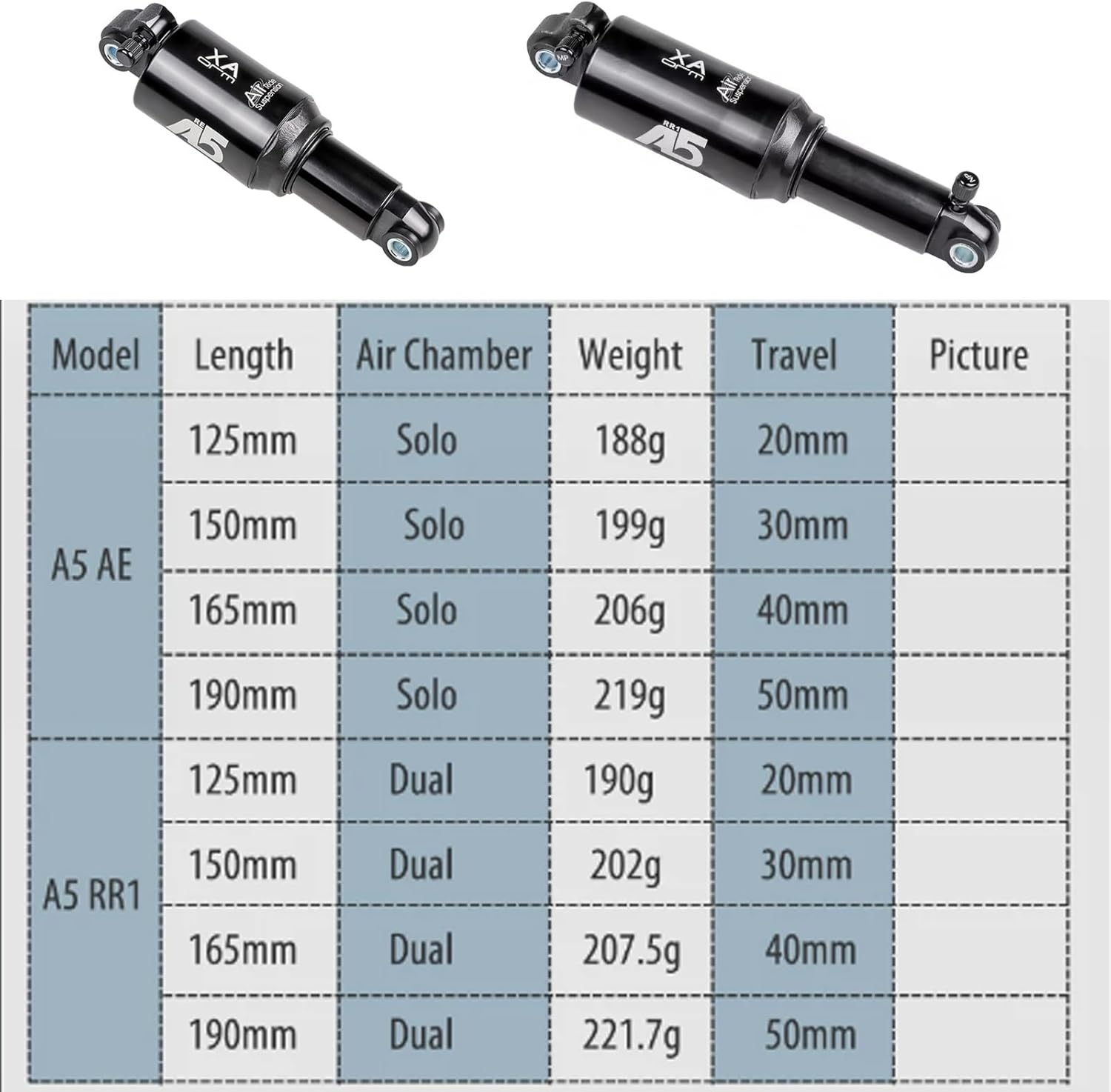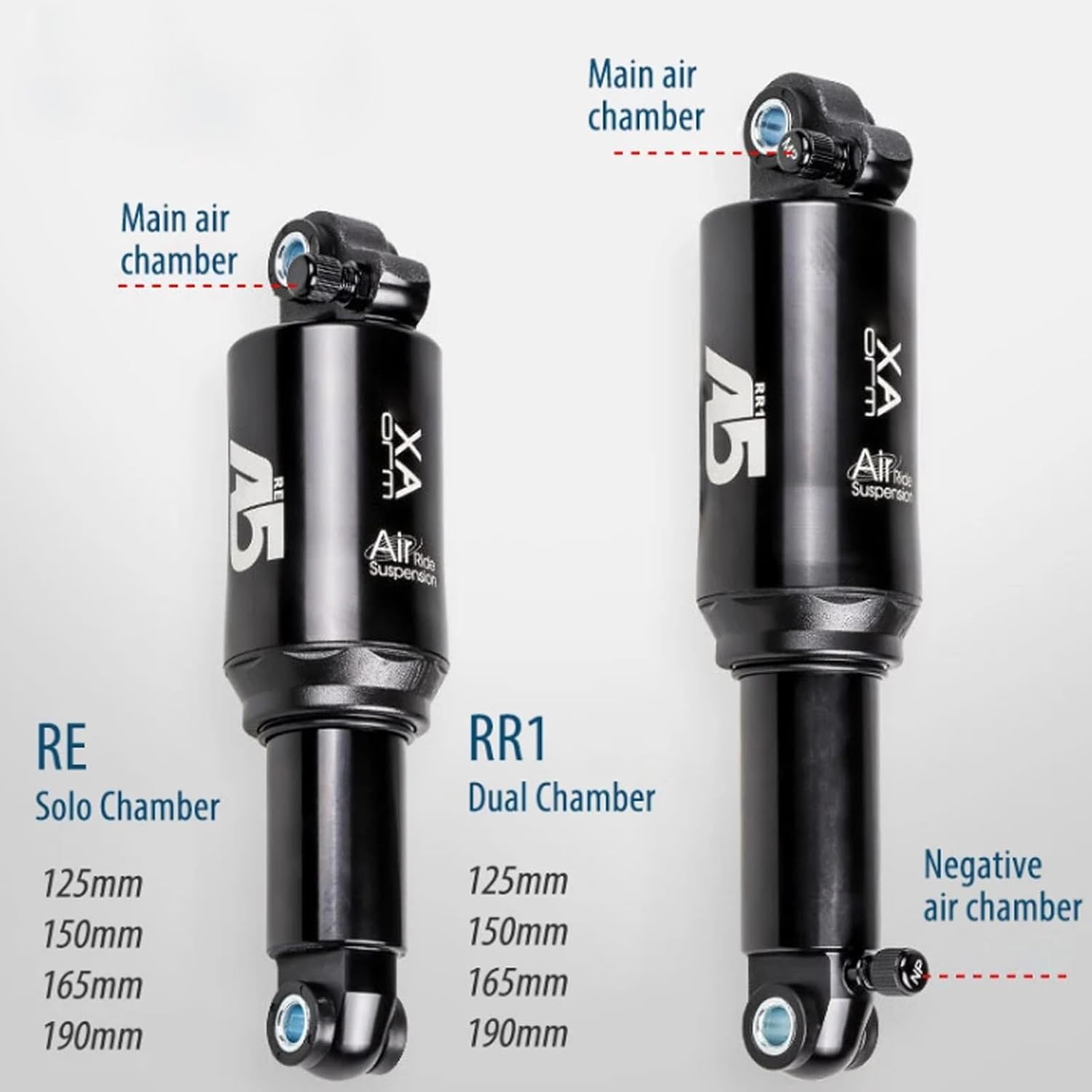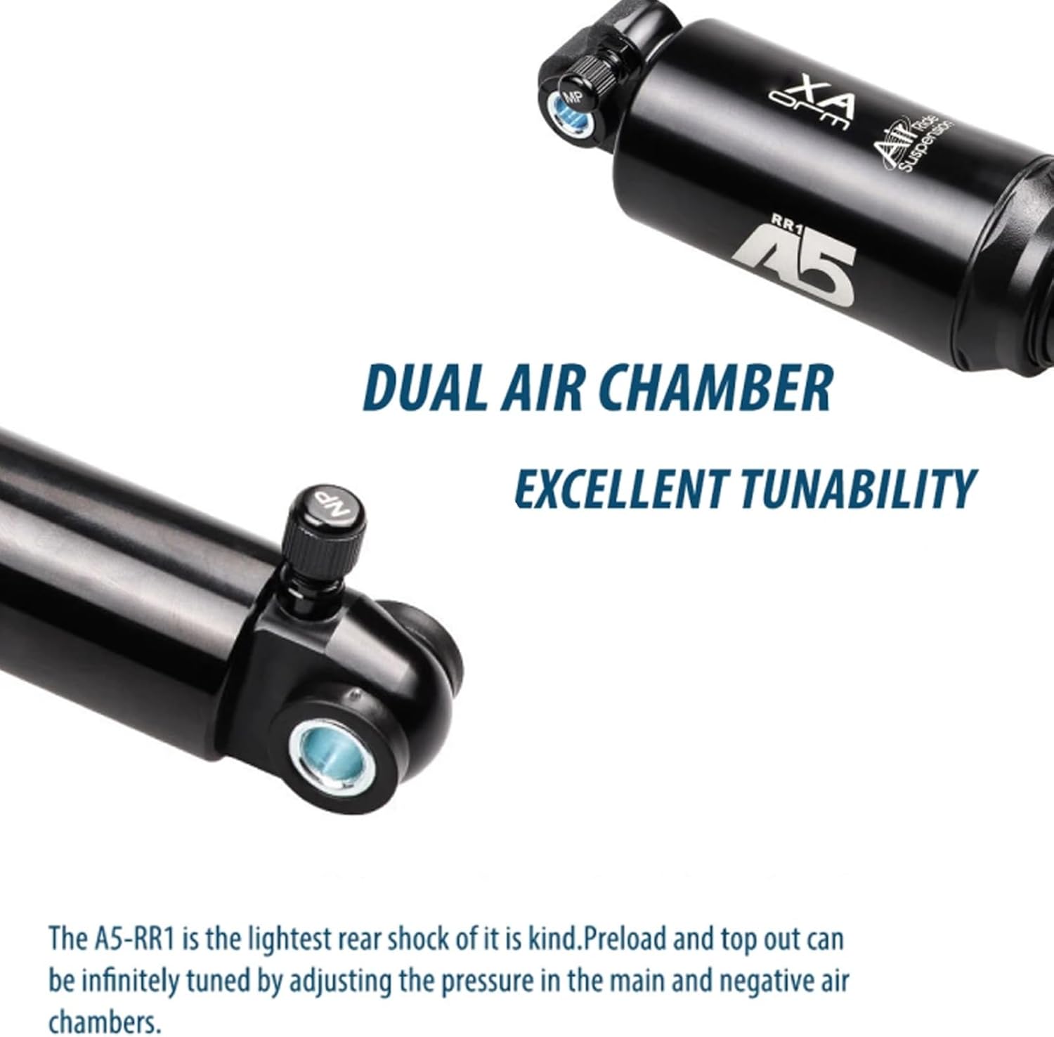 Das Fahrrad-Hinterradstoßdämpfer Doppel-/Einzel-Luftkammer, Mountainbike-Heckstoßdämpfer für Mountain-Faltrad, 125 mm/150 mm/165 mm/190 mm (doppelte Luft, 125 mm) ist ideal für Sportbegeisterte, die ein zuverlässiges Fahrrad suchen.