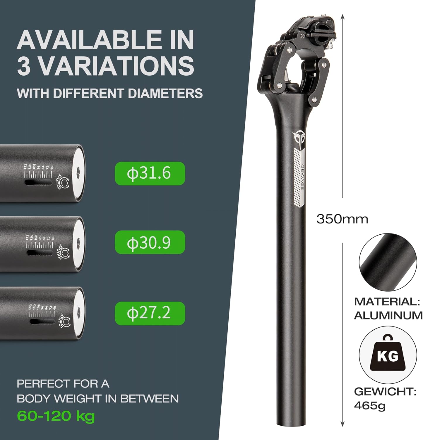 Top-Angebot: Fahrrad-Sattelstütze mit Federung, 27,2 / 30,9 / 31,6 mm, Stoßdämpfer, leichte Aluminiumlegierung, viergliedrig, Sattelrohr für Mountainbike, Rennrad, Kies, Hybrid und E-Bikes