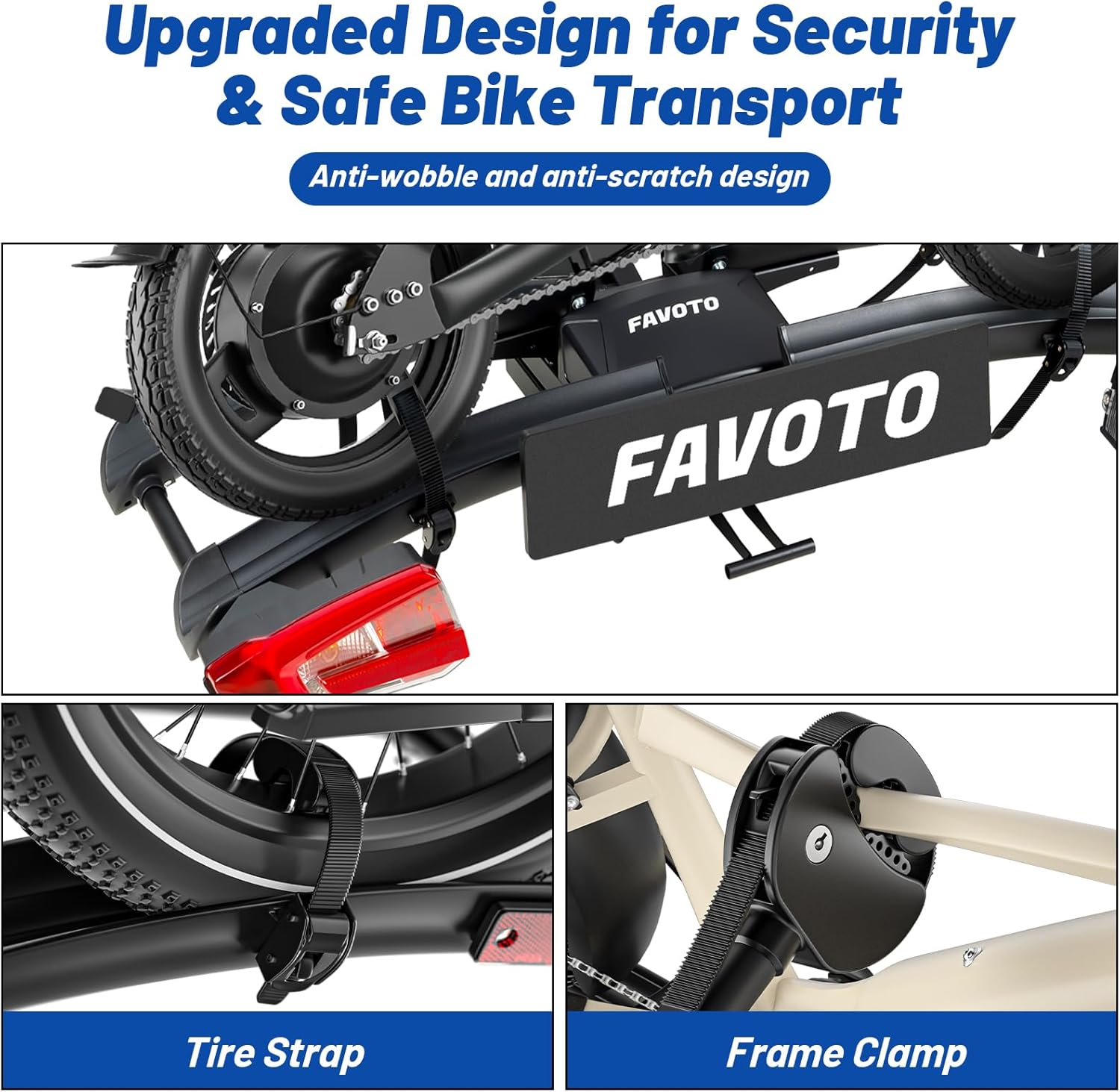 Mit dem Favoto Ebike Bicycle Carrier Towing Hitch Foldable – Rear Carrier for 2 Bicycles up to 60 kg Road Bike & MTB with Anti-Theft Rear Light & Number Plate Holder 26 x 4.0 bekommst du Qualität, Komfort und Stil – perfekt für deine nächste Tour.