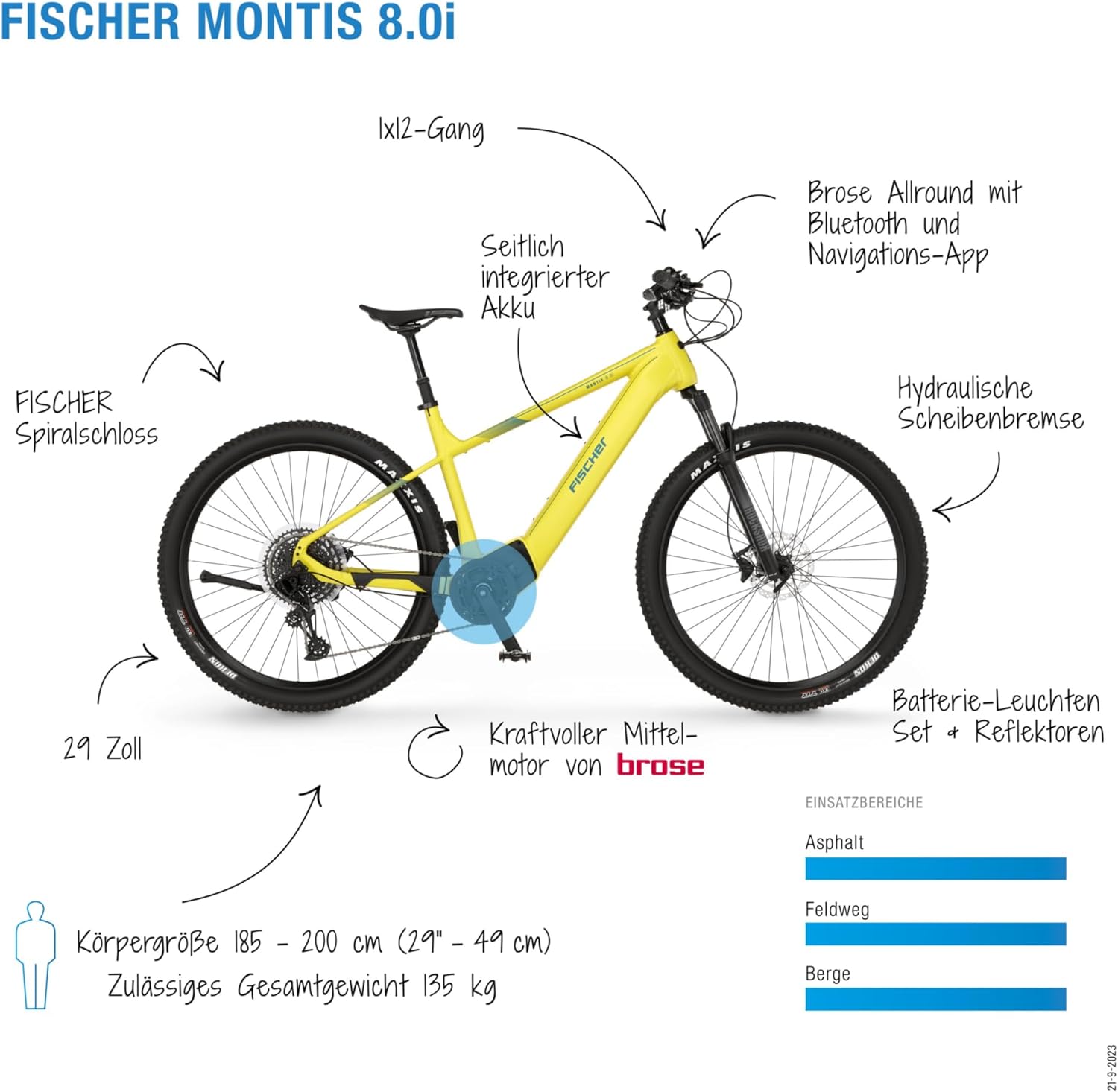 Jetzt entdecken: FISCHER Montis 8.0i Electric Mountain Bike for Men and Women, Mid Motor 90 Nm, 36 V Battery