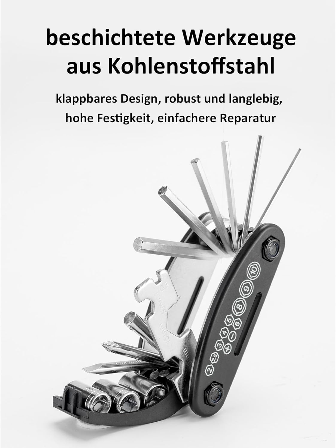 Mit dem FixAmRad Bicycle Multifunction Tool 16-in-1 Folding Mini Repair Kit with Allen Wrenches, Screwdrivers and Sockets Tool Set Accessories e-Bike Black bekommst du Qualität, Komfort und Stil – perfekt für deine nächste Tour.
