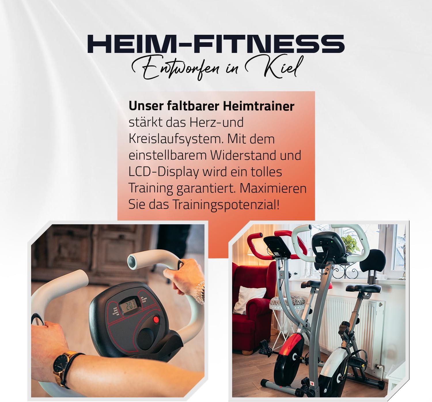 Mit dem Fjoerdesports Seniors Exercise Bike, Foldable Bicycle Trainer, Exercise Bike, Fitness Bike, LCD Training Computer, Foldable Home Trainer, Includes Pulse Measurement, 8 Resistance Levels bekommst du Qualität, Komfort und Stil – perfekt für deine nächste Tour.