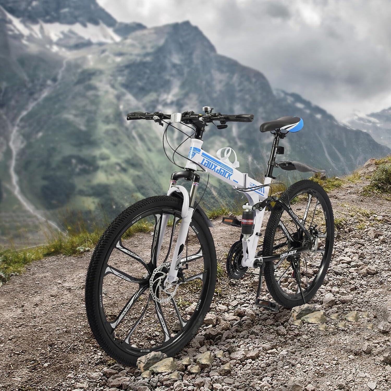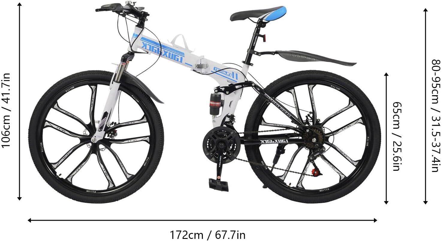 Top-Angebot: Folding Bicycle Mountain Bike Unisex Adult Bicycle Folding Bike Folding Bikes Mountain Folding Disc Brake Fully MTB High-Strength Steel Frame with Mudguard Gear Bicycle 26 Inch 21 Speed