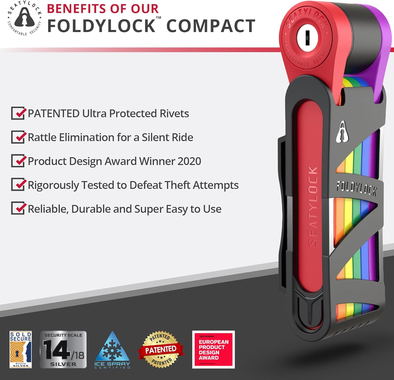 Top-Angebot: FoldyLock Compact Bicycle Folding Lock – Patented Test Winner Bicycle Lock with Key and Holder for High Security – Lightweight and Safe for Ebike, e Scooter and Scooter – 85 cm