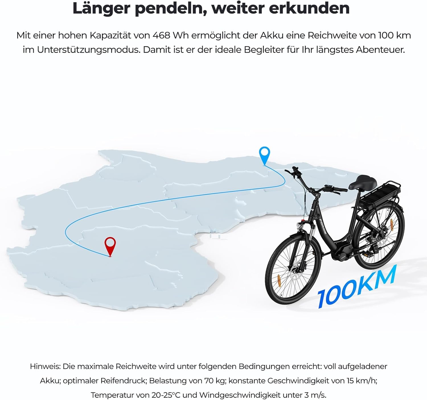 Jetzt entdecken: Foride Urbano 2 26 Inch City E-Bike with 70 N.M Middle Motor and 36 V 13 Ah Battery Pedelec City Bikes Electric Bicycle, Max Speed 25 km/h Max Range 120 km, Adult Men Women Ebike