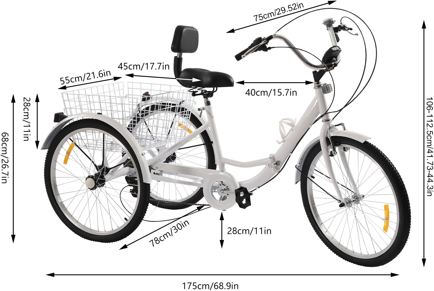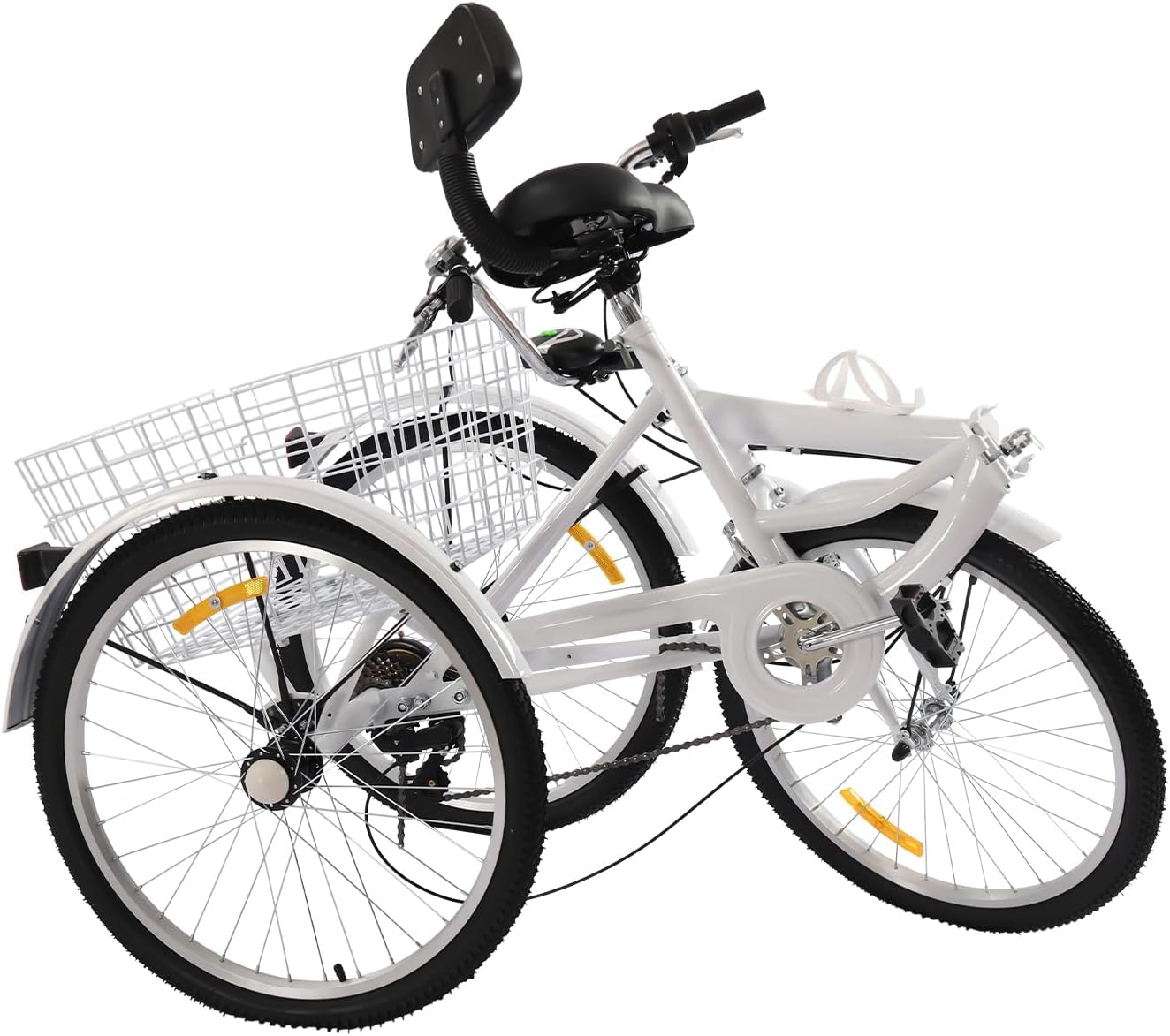 Das Fridgestea 24 Inch Tricycle for Adults, 3 Wheels, 7 Speed Bicycle, Foldable, Trike Foldable with Holder for Water Bottle, Adult Tricycle with Front Light, Basket, Double Brakes ist ideal für Hobbyradler, die ein zuverlässiges Fahrrad suchen.