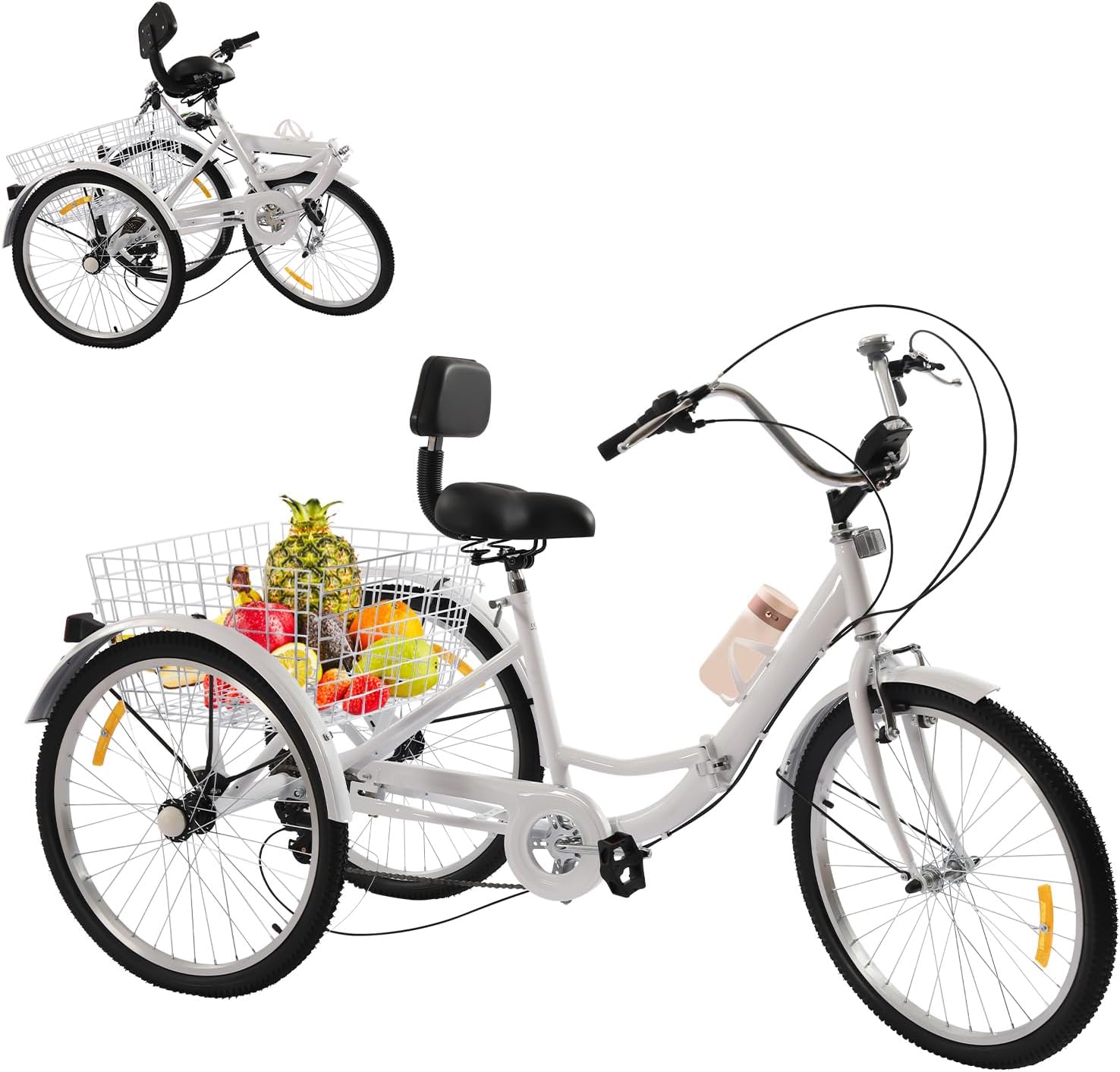 Top-Angebot: Fridgestea 24 Inch Tricycle for Adults, 3 Wheels, 7 Speed Bicycle, Foldable, Trike Foldable with Holder for Water Bottle, Adult Tricycle with Front Light, Basket, Double Brakes