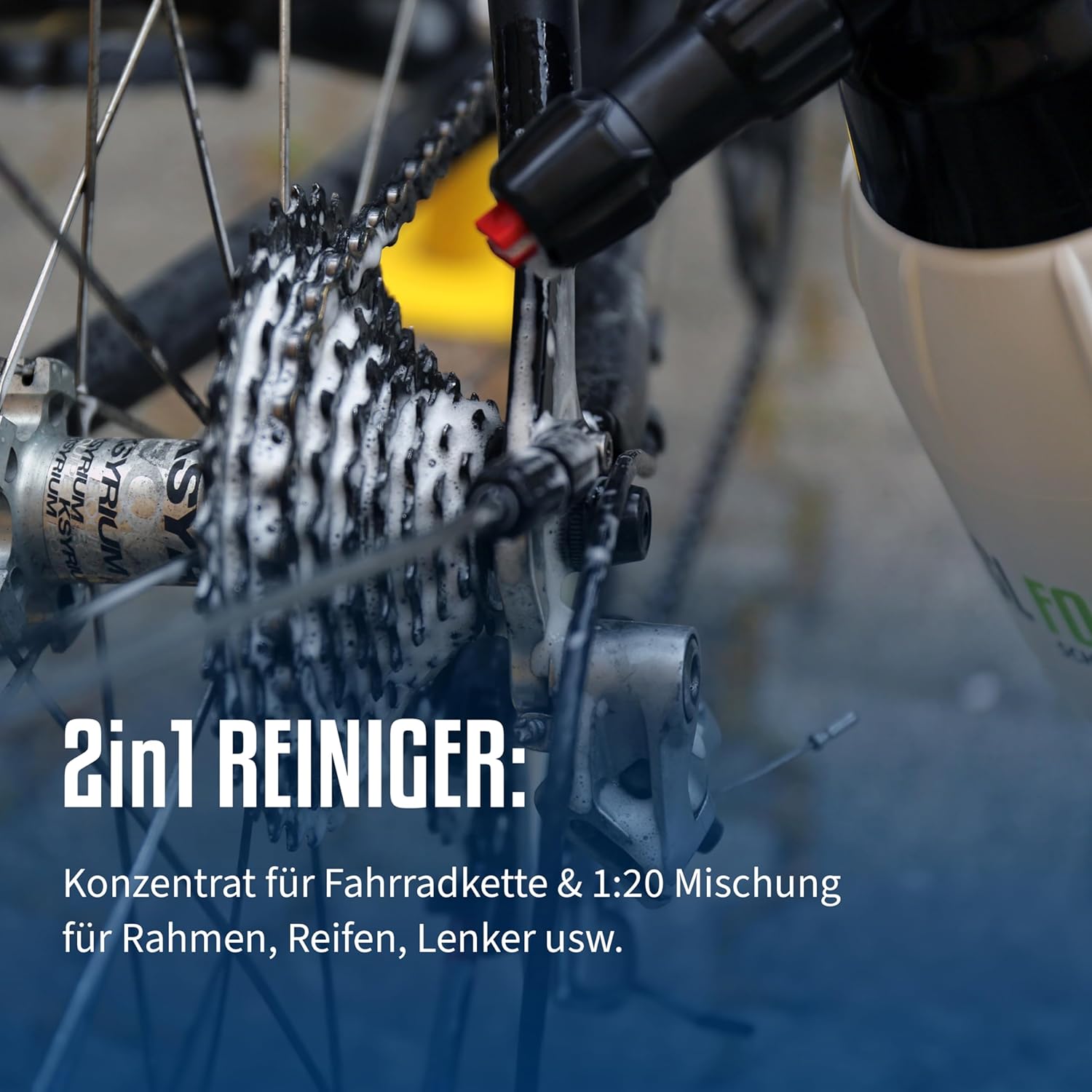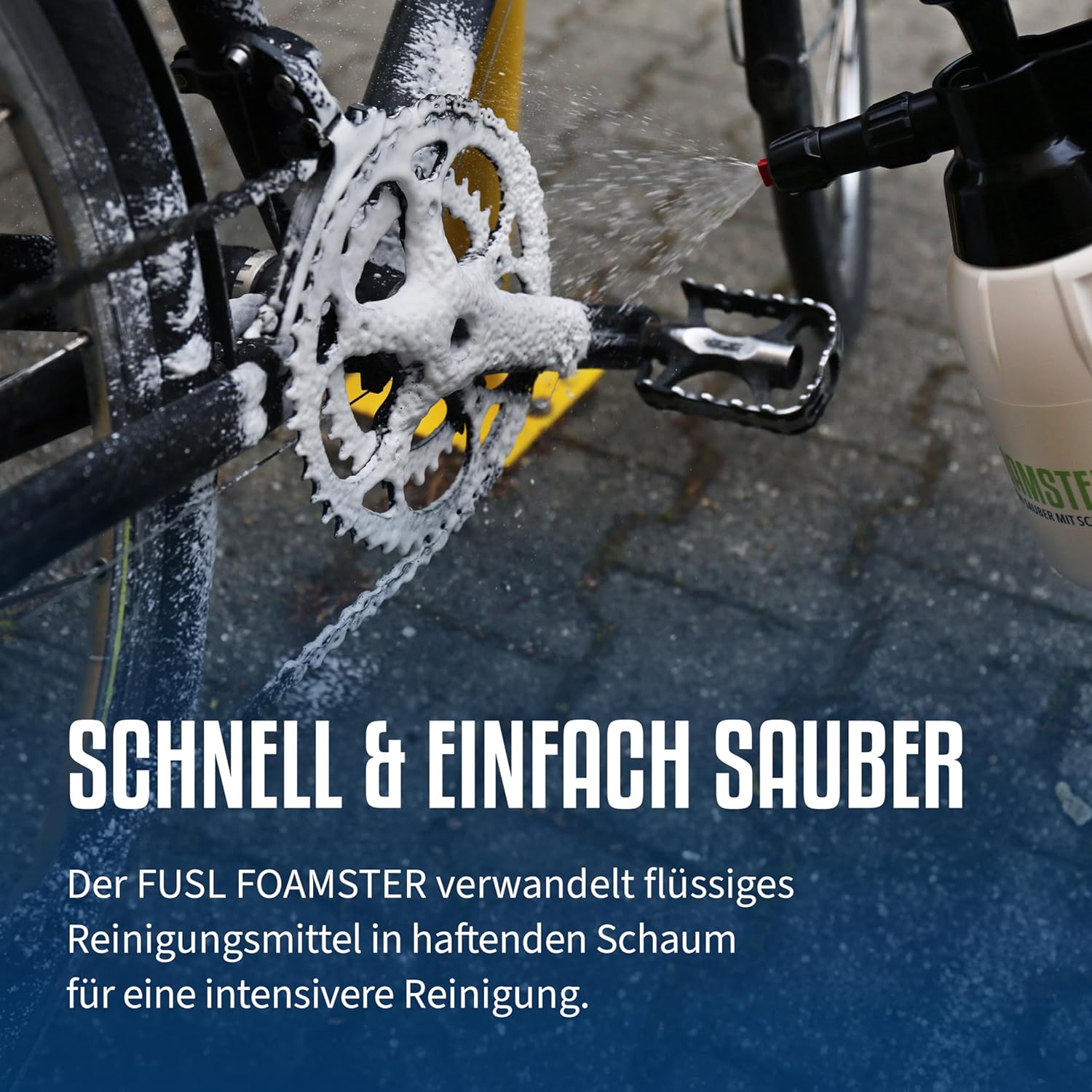 Jetzt entdecken: FUSL Bicycle 2-in-1 Bicycle Cleaner – for Chain/Drive/Frame – Chain Cleaner/Drive Cleaner for Steel/Stainless Steel/Aluminium/Carbon/Plastic – 500 ml / 1 L (Foamster Set)