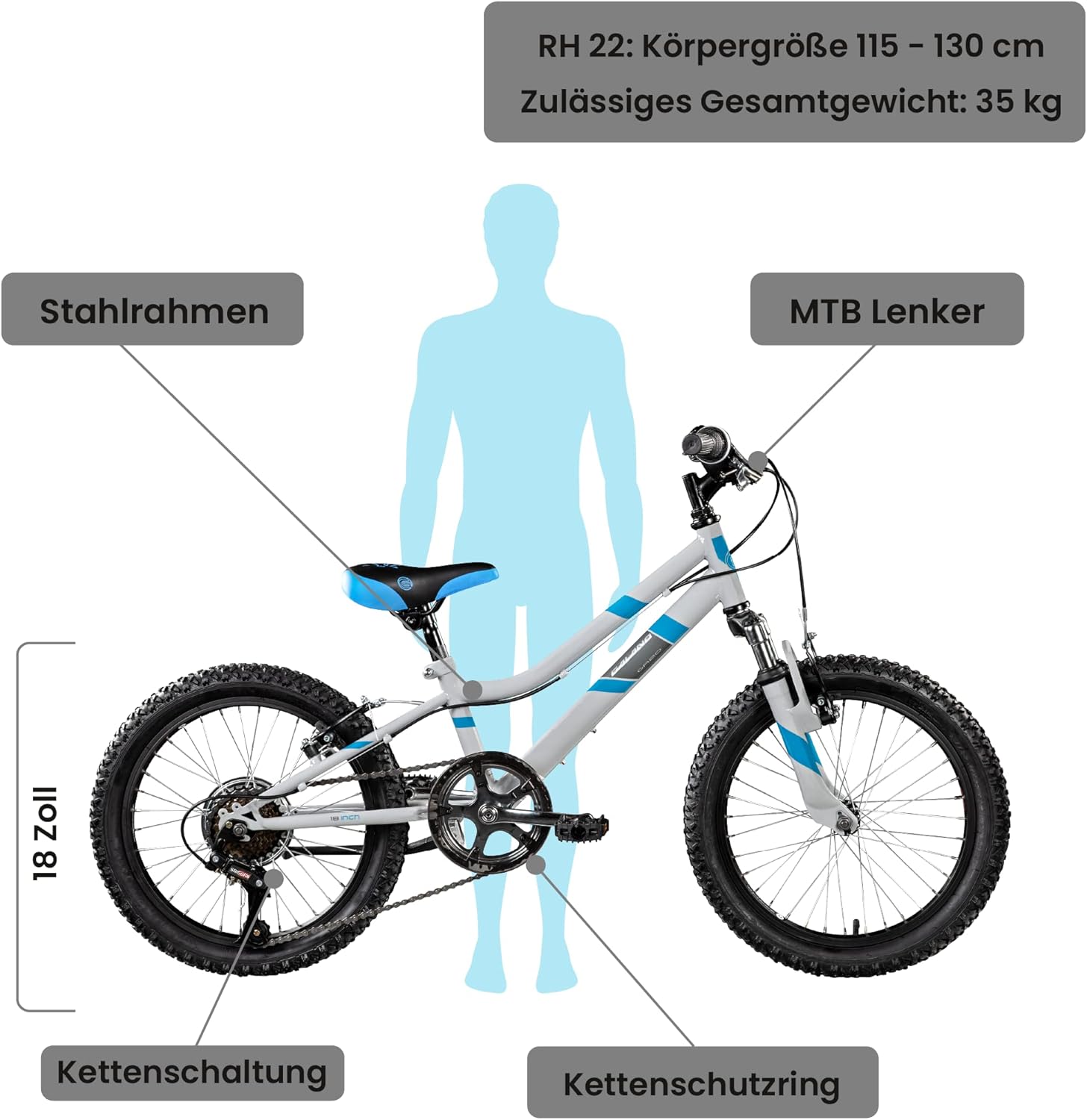 Top-Angebot: Galano Bicycle Children from 5 Years | Children’s Bicycle 115-130 cm for Girls and Boys with 7 Gears | 18 Inch Mountain Bike with Suspension Fork | Lightweight Hardtail Bike | GA20