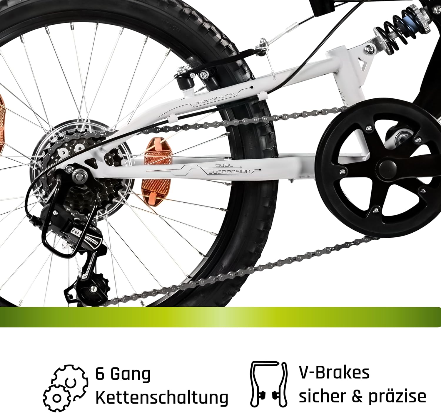 Jetzt entdecken: Galano FS180 Children’s Bicycle from 6 Years Mountain Bike Fully from 120 cm for Girls and Boys 20 Inch 6 Speed Gears MTB Unisex Children’s Bike with V Brakes