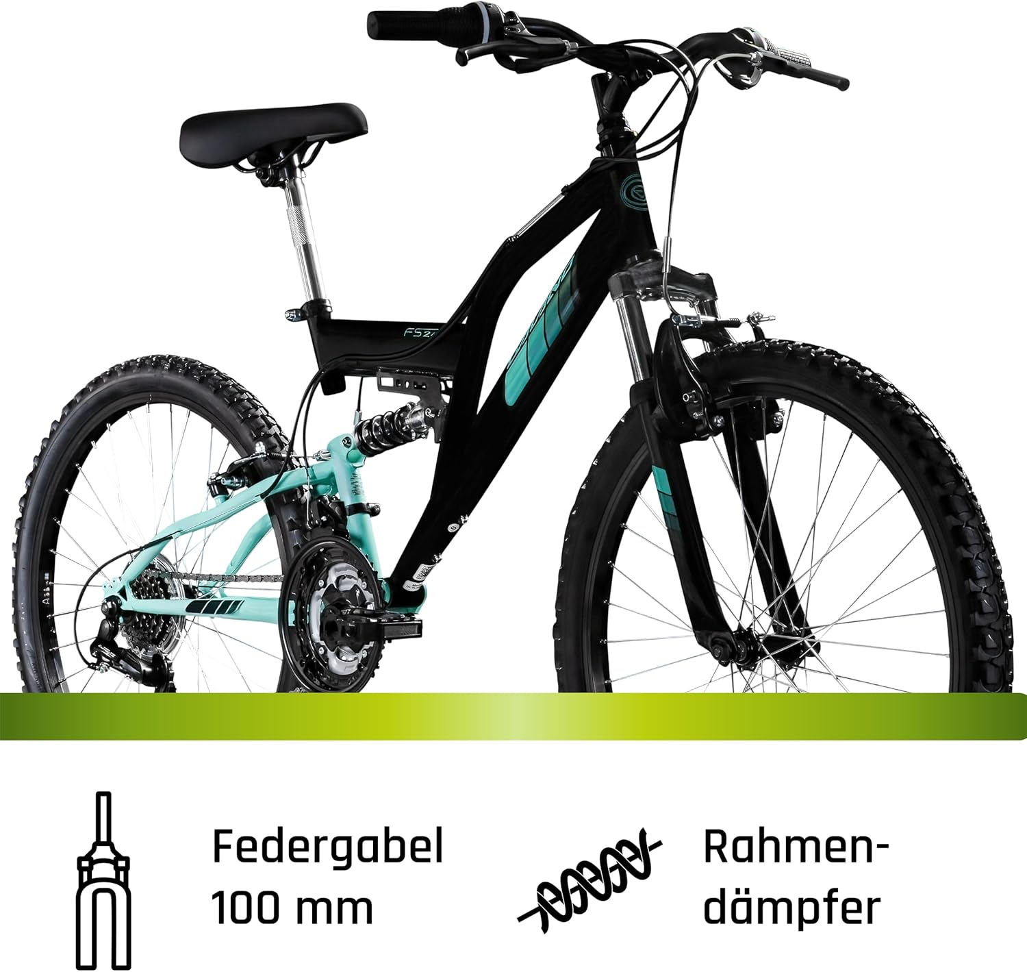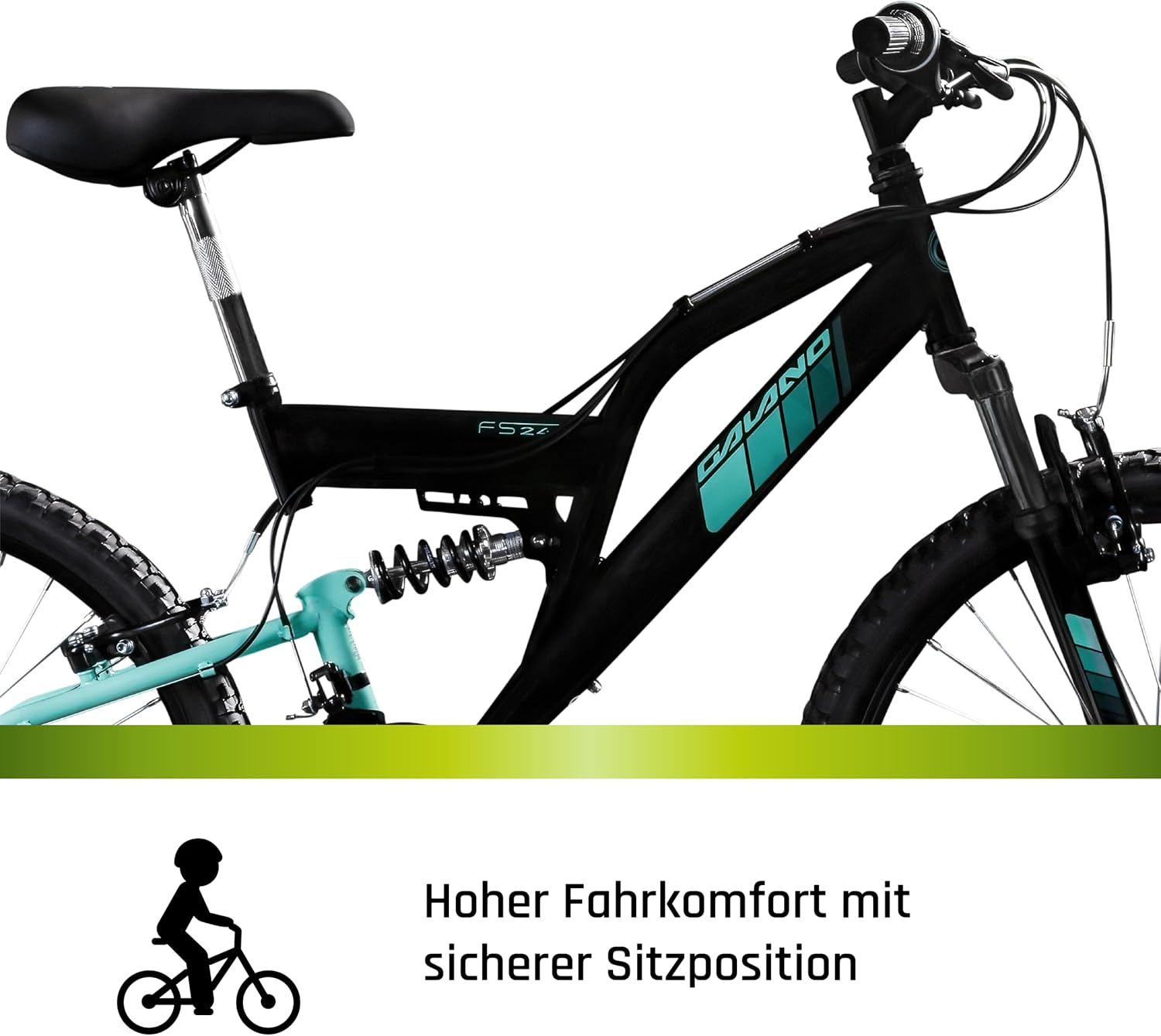 Top-Angebot: Galano FS240 Mountain Bike Children’s Bicycle 24 Inch Bicycle 130-145 cm Fully from 8 with 18 Gears Youth Bicycle MTB