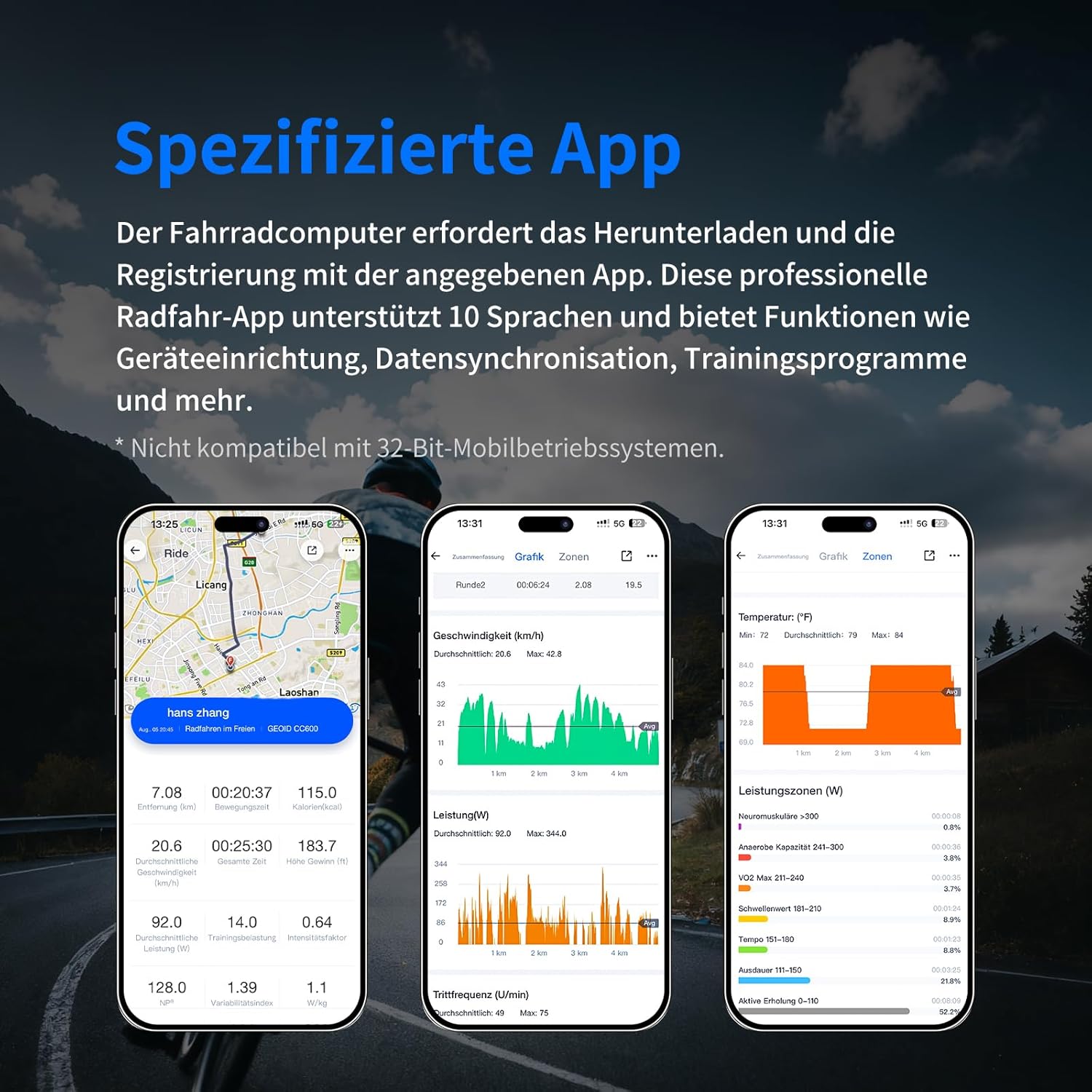 Mit dem GEOID CC600 GPS Bicycle Computer, 2.4 Inch Colour Screen, Wireless Waterproof Bicycle Speedometer, Route Navigation, Custom Data, Multiple Languages, WiFi & Bluetooth & ANT+ bekommst du Qualität, Komfort und Stil – perfekt für deine nächste Tour.